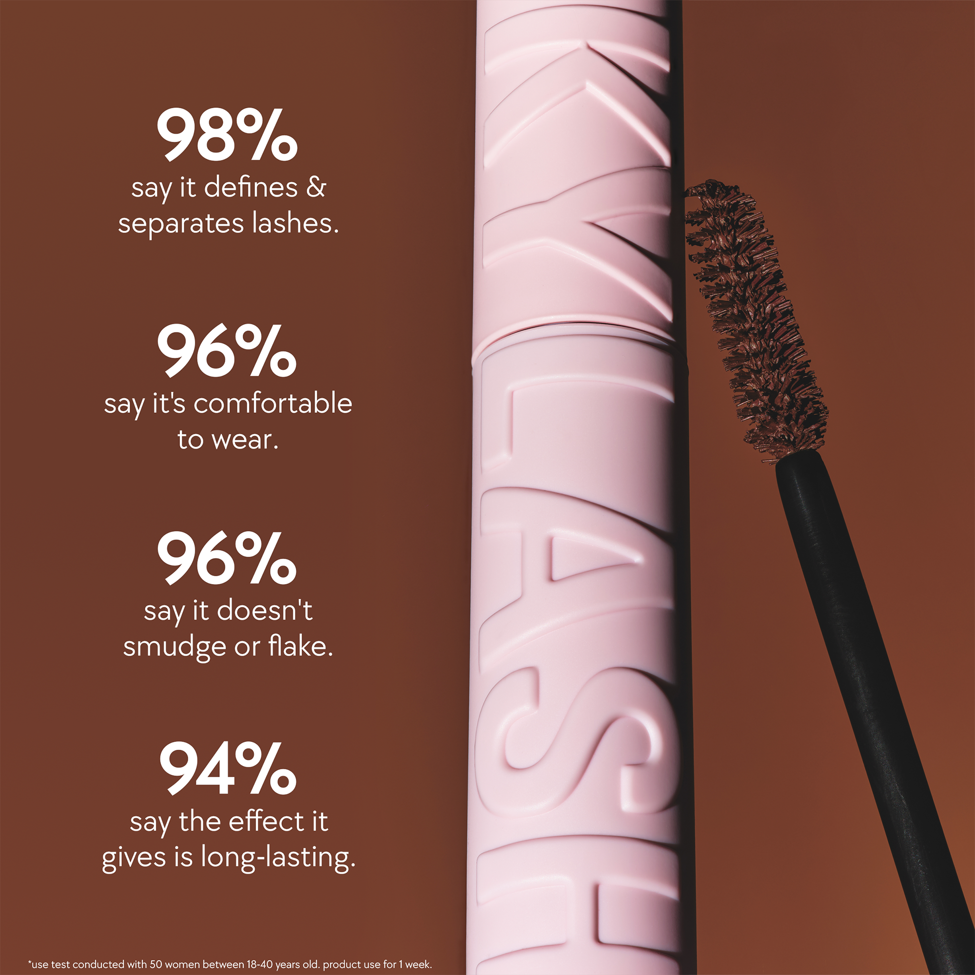 Starting at the base of the lashes, pull the mascara brush through from root to tip for instant volume.\|If you typically use an eyelash curler, feel free to curl your lashes.