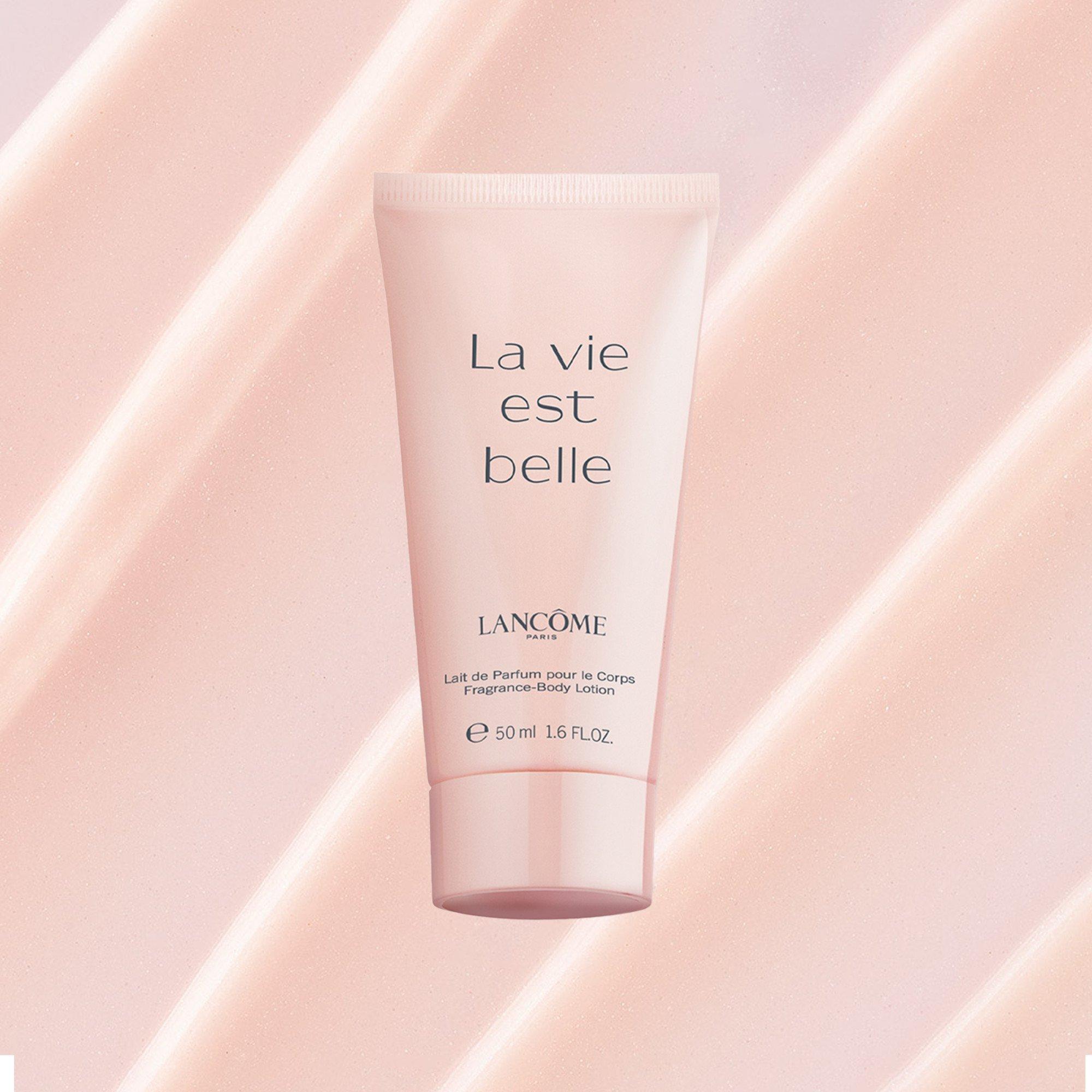 La Vie Est Belle: Alcohol, Parfum / Fragrance, Aqua / Water / Eau, Tris(Tetramethylhydroxypiperidinol) Citrate, Diethylamino Hydroxybenzoyl Hexyl Benzoate, CI 14700 / Red 4, CI 60730 / Ext. Violet 2, Linalool, Alpha-Isomethyl Ionone, Coumarin, Limonene, Citral, Citronellol, Benzyl Alcohol, Benzyl Salicylate. La Vie Est Belle Body Lotion: Aqua / Water / Eau, Glycerin, Ethylhexyl Palmitate, Parfum / Fragrance, Butyrospermum Parkii Butter / Shea Butter, Brassica Campestris Seed Oil / Rapeseed Seed Oil, Stearyl Alcohol, Glyceryl Stearate, PEG-100 Stearate, Caprylic/Capric Triglyceride, Royal Jelly Extract, Propylene Glycol, Caprylyl Glycol, Citric Acid, Laureth-7, Xanthan Gum, Polyacrylamide, Butyl Methoxydibenzoylmethane, C13-14 Isoparaffin, Phenoxyethanol, CI 14700 / Red 4, CI 19140 / Yellow 5, Linalool, Alpha-Isomethyl Ionone, Coumarin, Limonene, Citronellol, Hexyl Cinnamal, Benzyl Alcohol, Benzyl Salicylate.