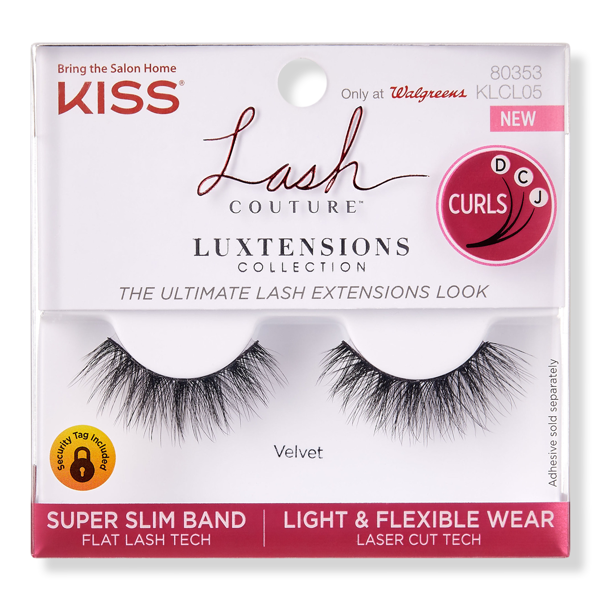 KISS Lash Couture Luxtensions, Velvet is the ultimate false eyelash extensions look in a strip lash! Strip lash with super slim lash band & lightweight fit with a mix of D, C and J lash curls.