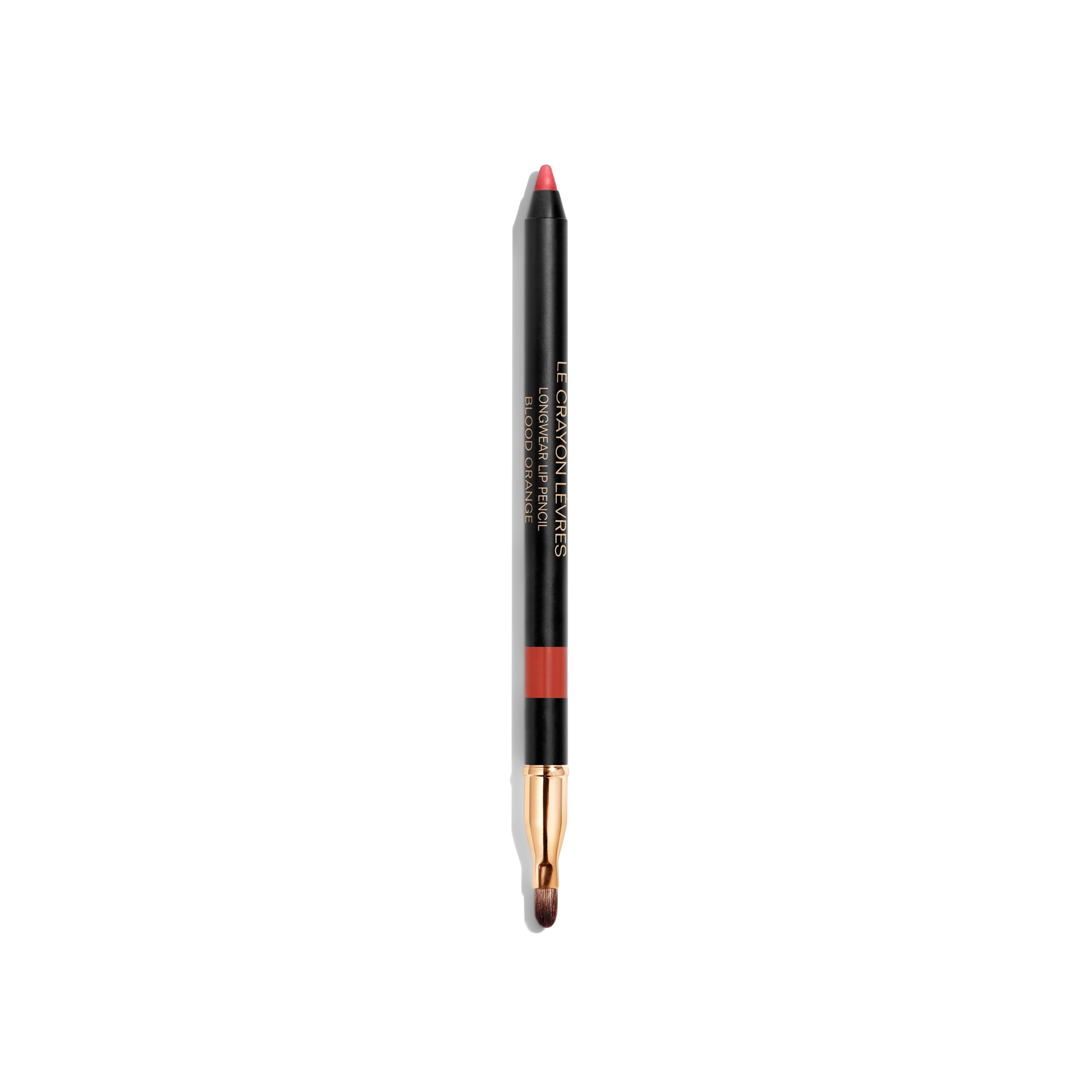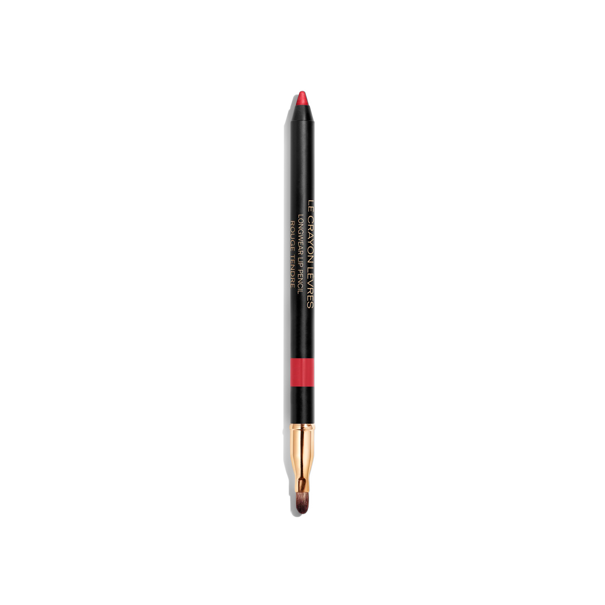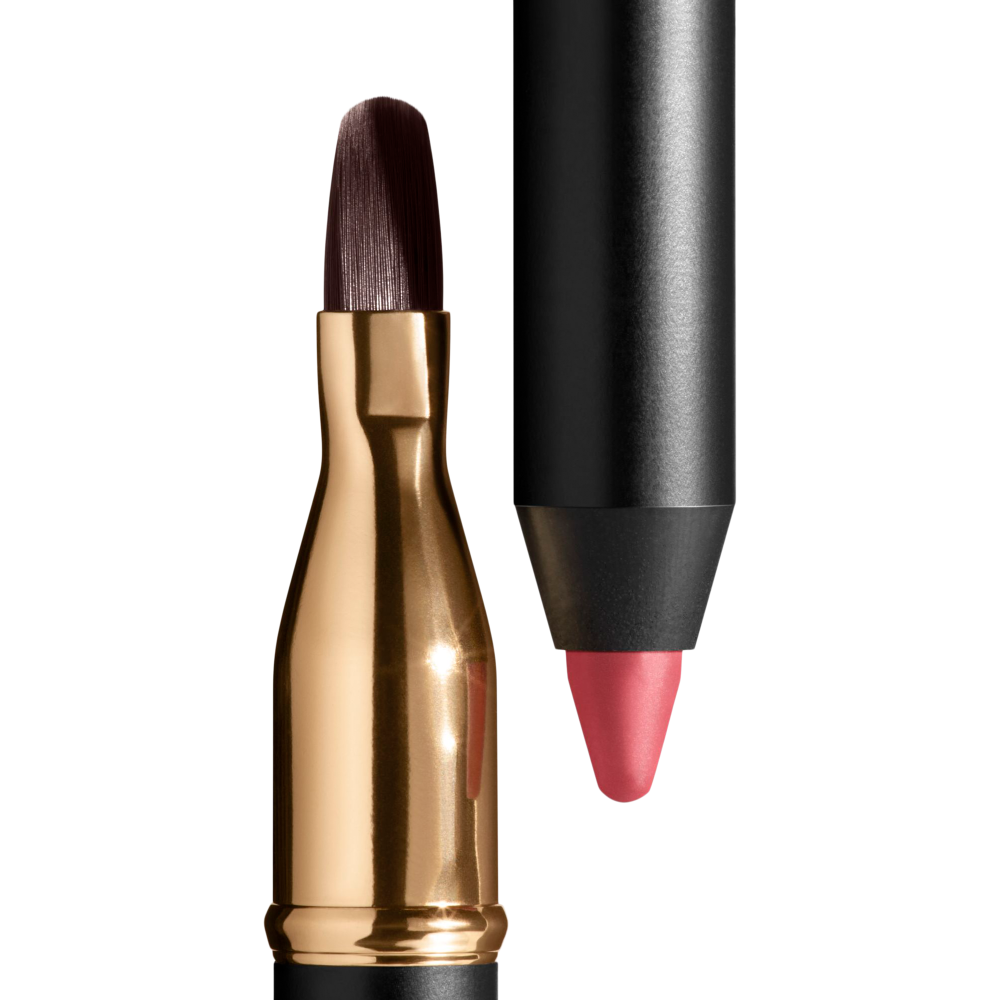 Line the lip contour and fill in, using the bult-in brush to blend out colour. Follow with lipstick for extended wear.