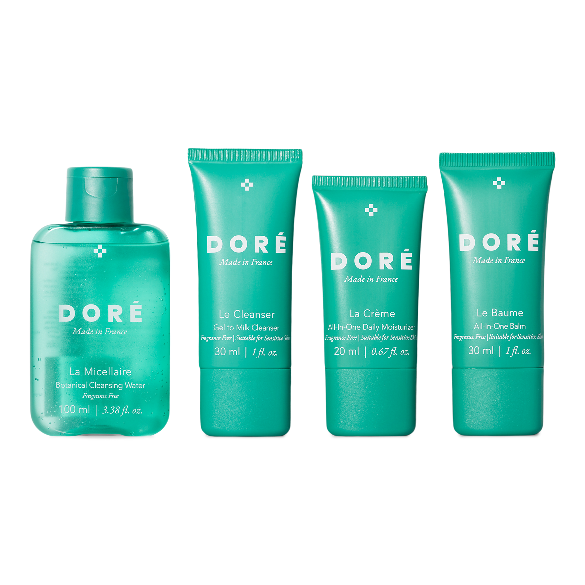Designed for ease and simplicity while on the go, Doré’s Le Mini Set consists of travel sizes of La Micellaire, Le Cleanser, La Crème and Le Baume, designed to work together for a clean, gentle and effective daily regimen that’s fragrance-free and suitable for all skin types.