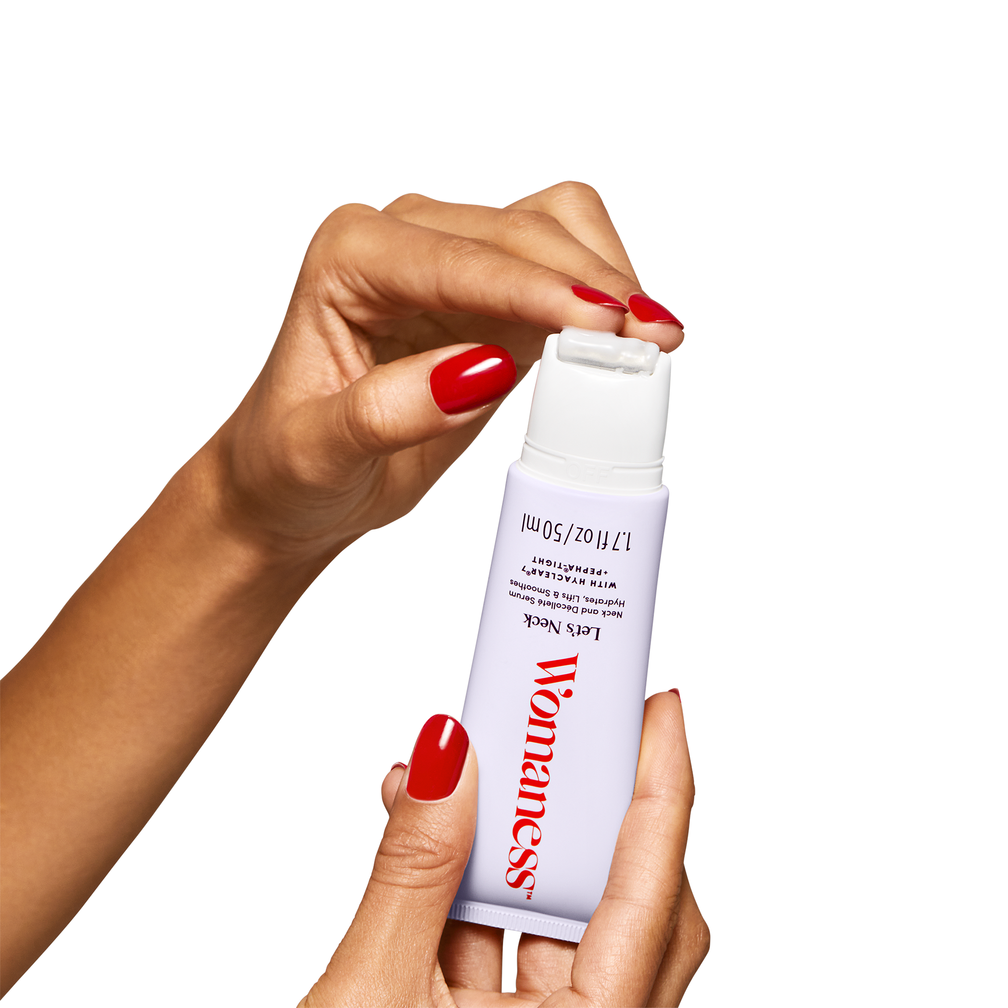 Womaness Let's Neck - Neck and Décolleté Serum firms, smoothes, and hydrates the thinning, crepey skin on your neck and décolleté in menopause.