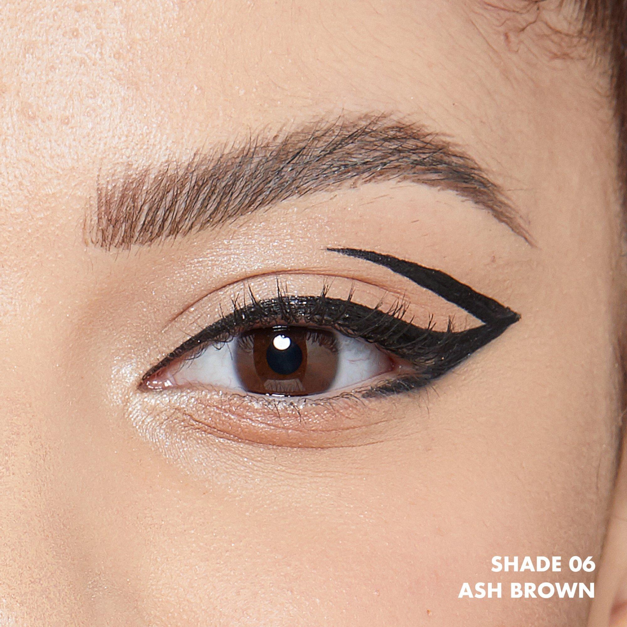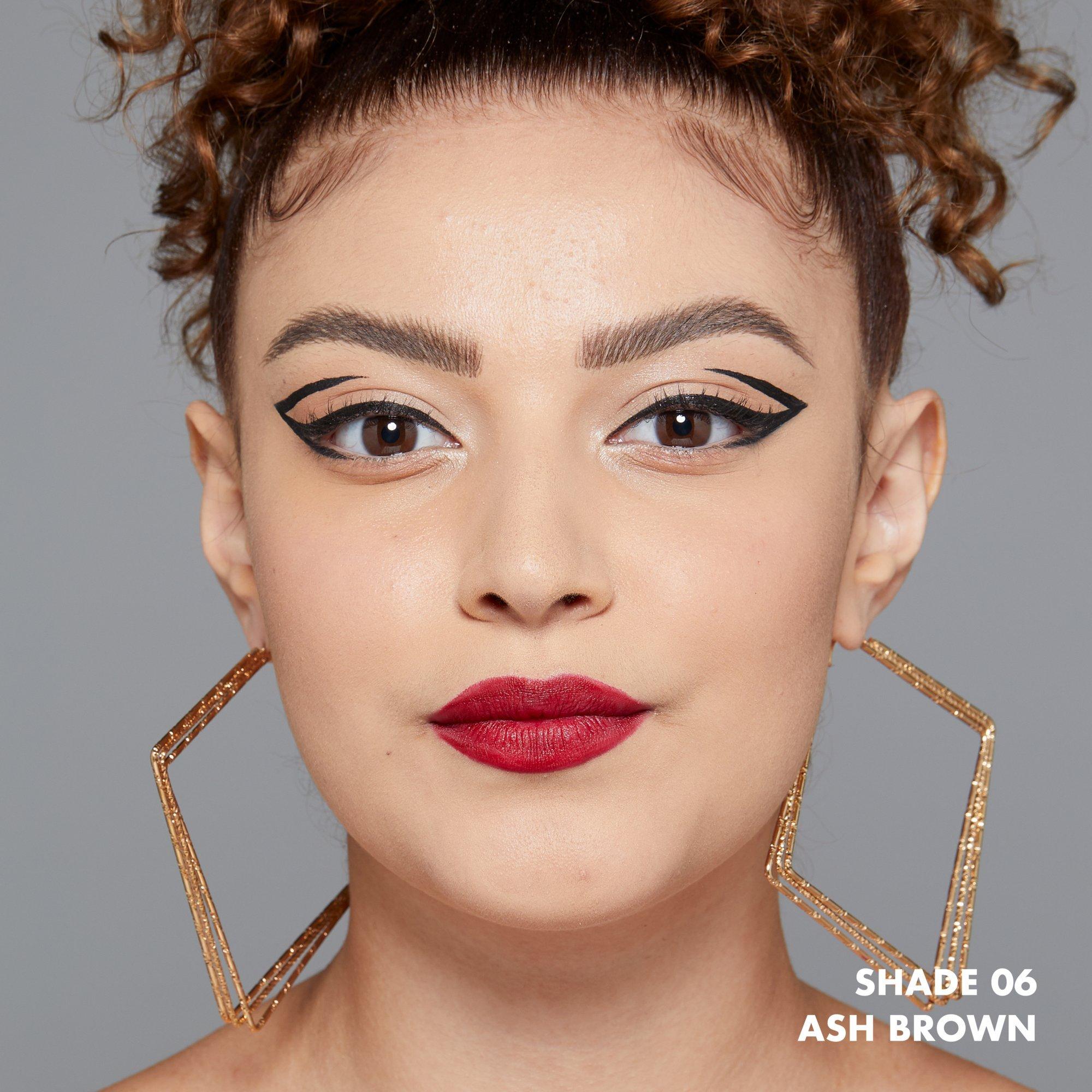 Shake pen at a downward angle. Fill in sparse areas with precise hair-like strokes and add definition to other brow areas. Pro-Tip: To create a lifted look, flick applicator in an upward, vertical motion. Press harder for thicker hair-like strokes and lighter for thinner more natural looking hair-like strokes.