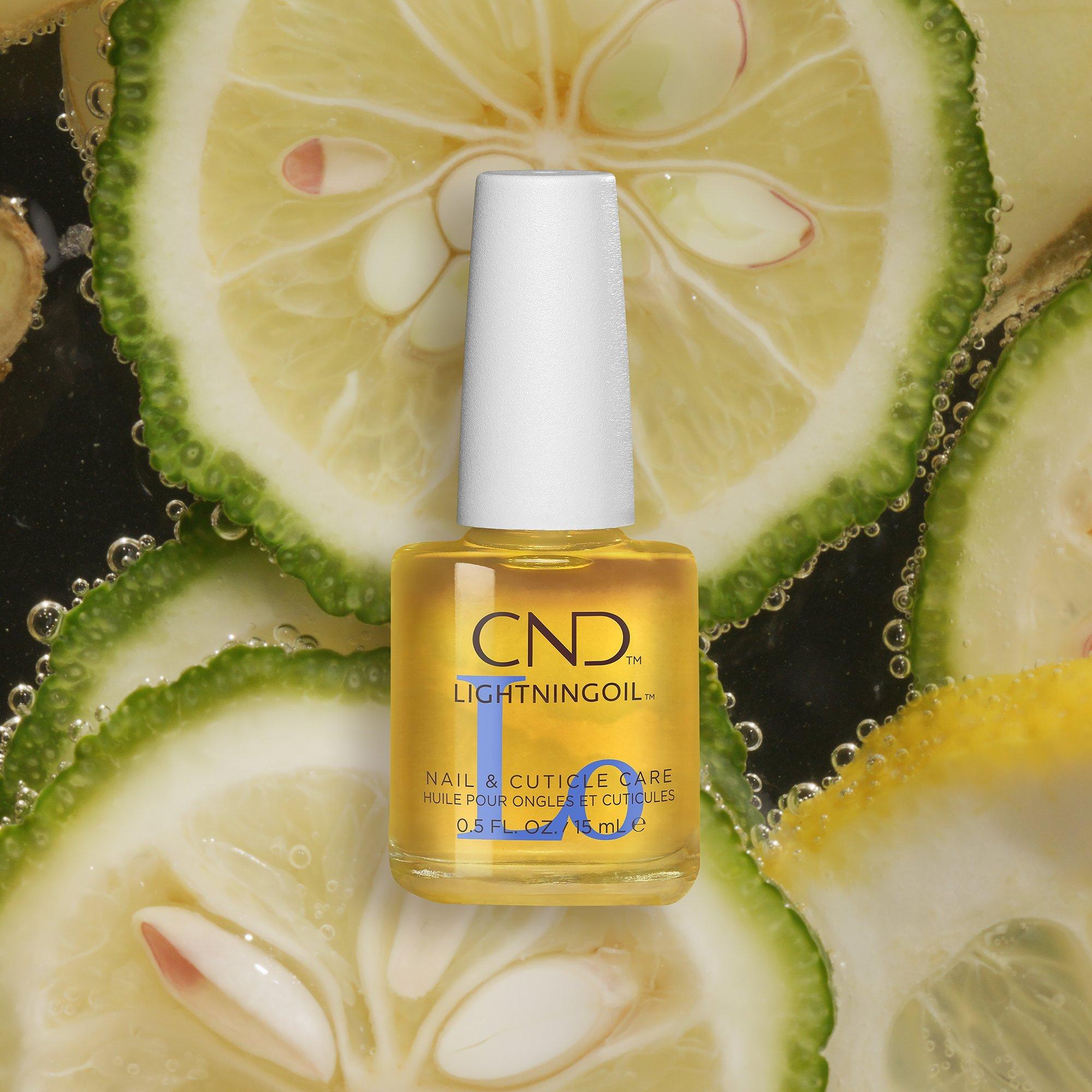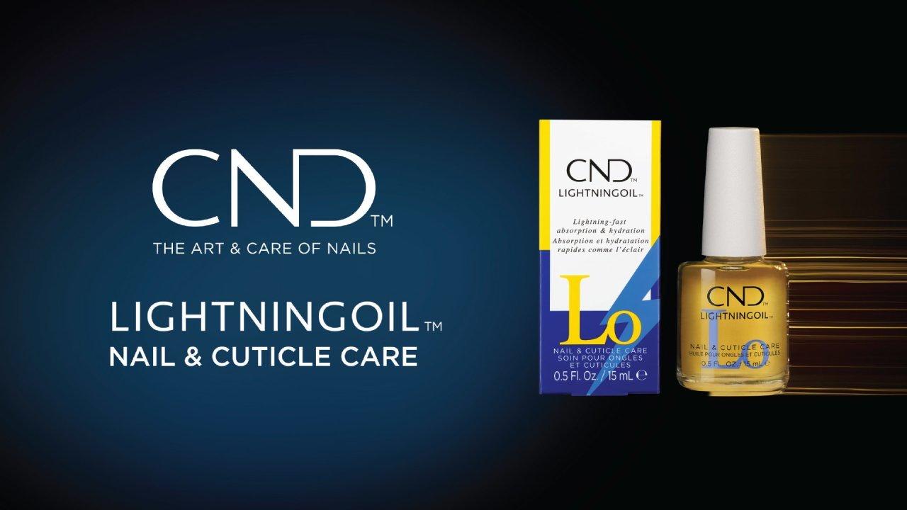 LightningOil Nail & Cuticle Oil from CND is a fast acting cuticle oil made from a unique CND blend of four naturally light oils. Refined COPRA oil, Rosehip oil, Rice Bran Oil & Vitamin E. Formulated to rapidly penetrate into the skin.