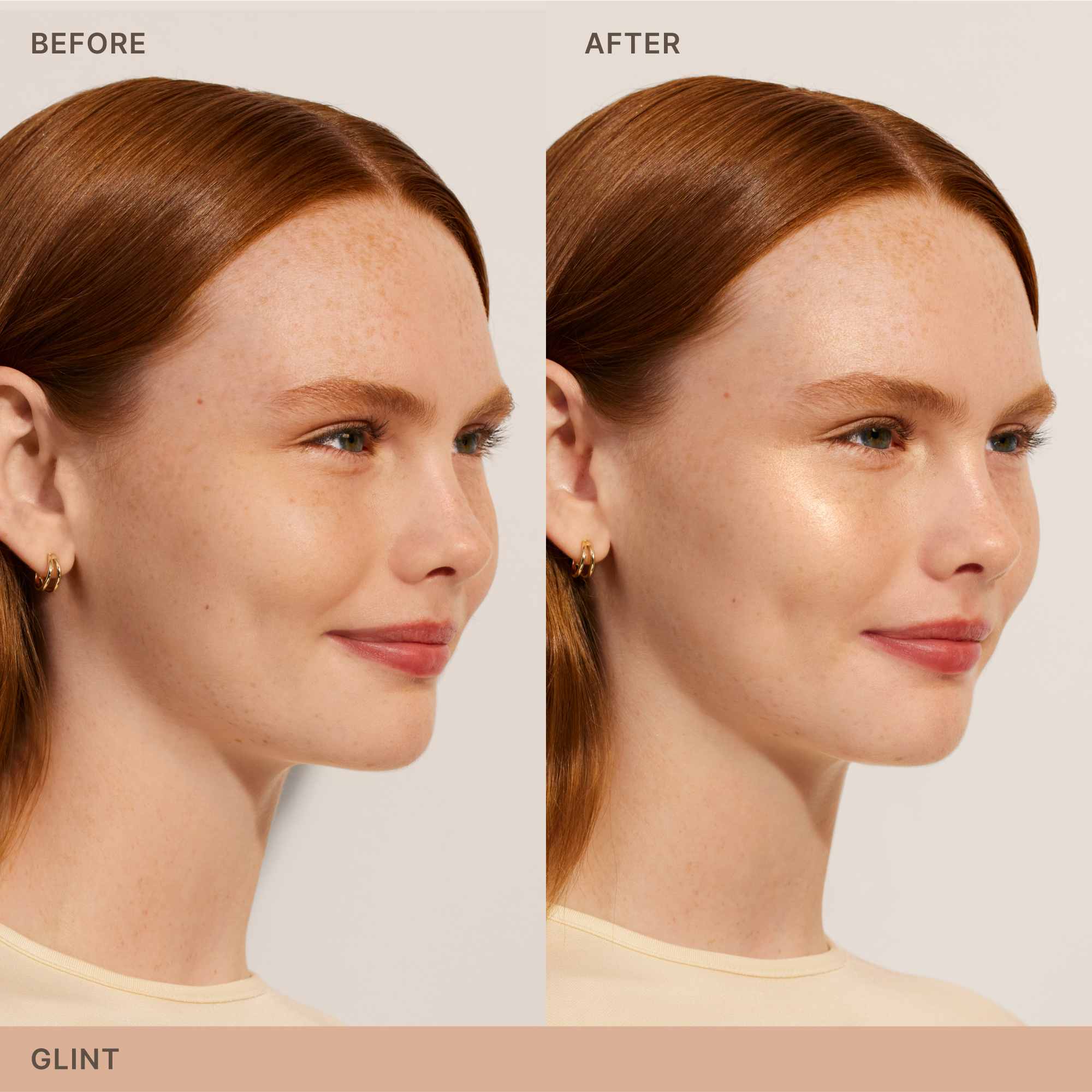 Use the flat side of a Sculpting Brush to pick up product. Gently press highlighter where skin catches the light - tops of cheekbones, tip of the nose + chin, brow bone, and cupid's bow.