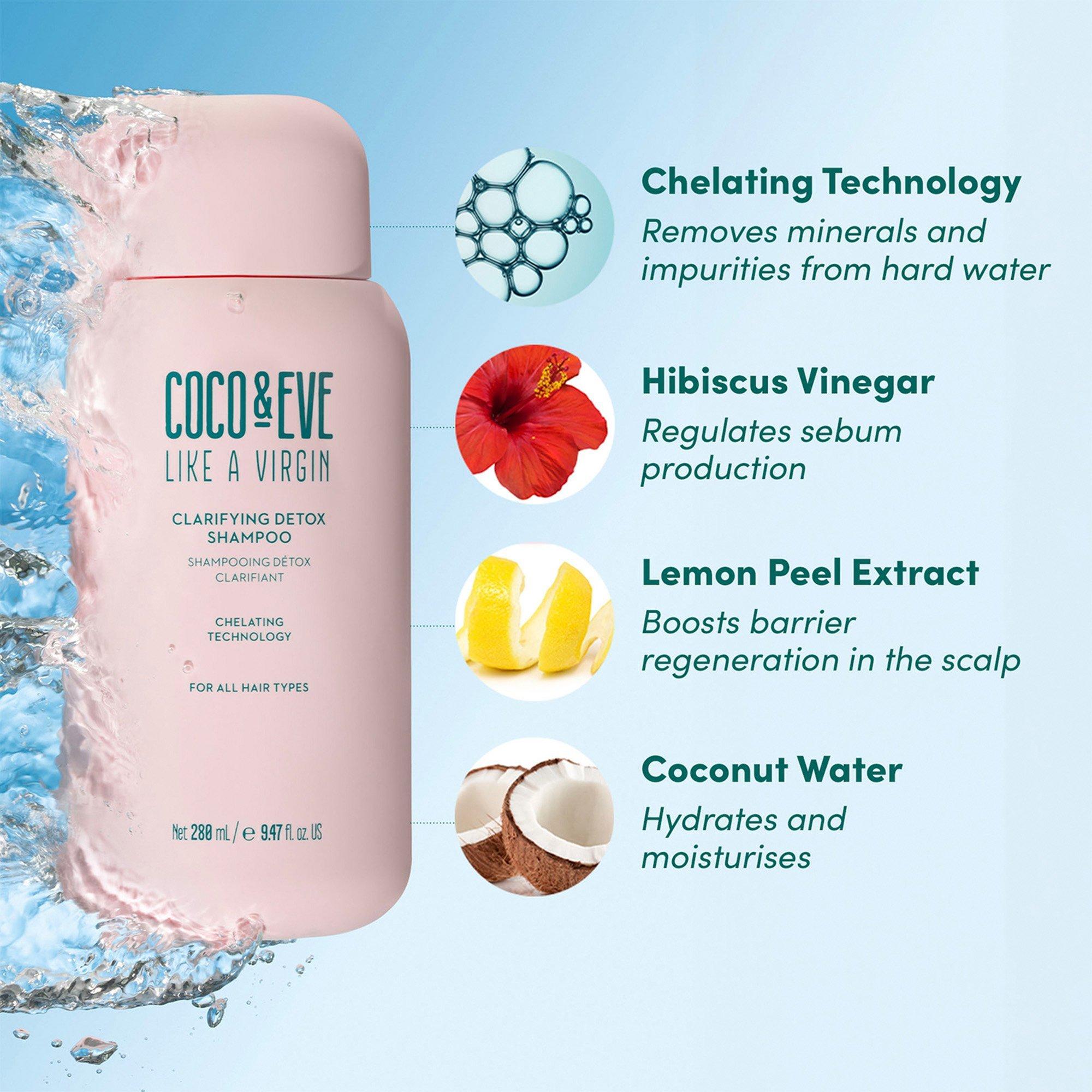 Get purified, refreshed hair with Coco & Eve Like a Virgin Clarifying Detox Shampoo! Deeply cleanses without stripping, colour-safe, neutralises pH level and a chelating technology to remove hard water, product build up & impurities.