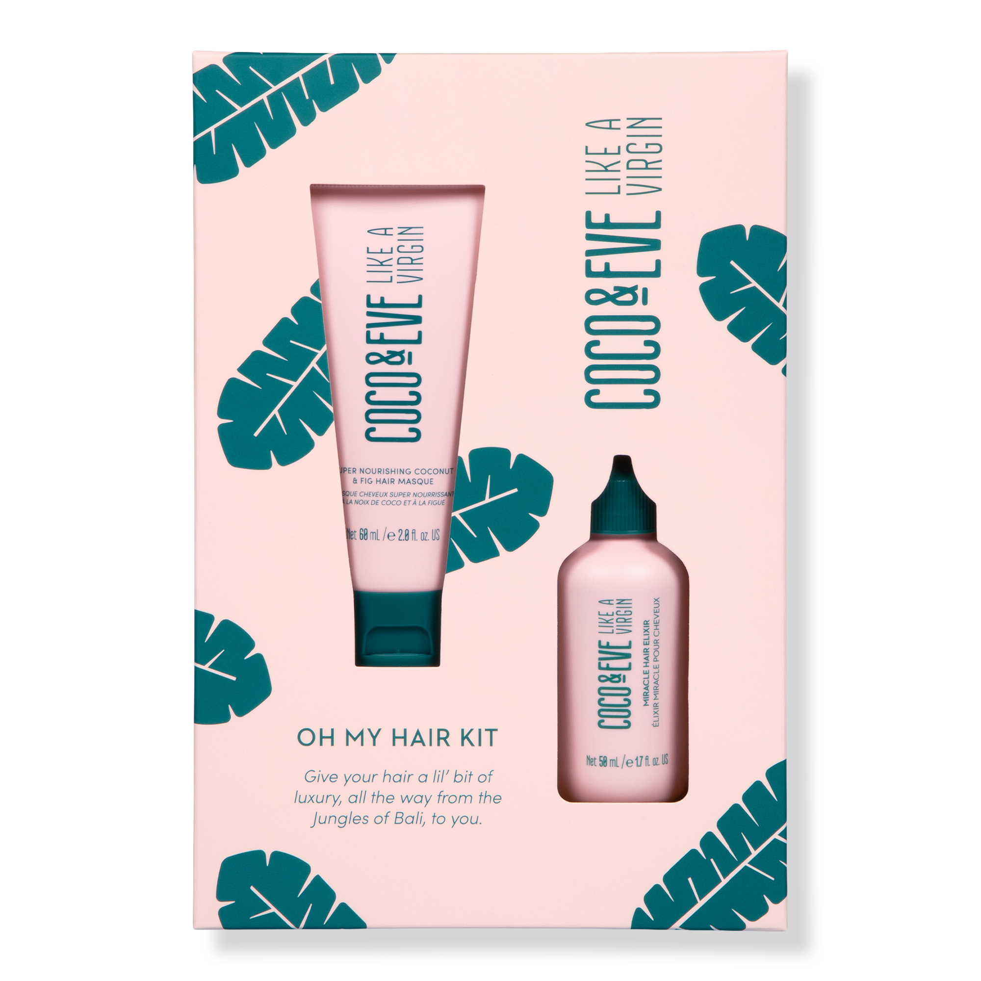 Get instant hair goals anywhere and anytime with this haircare power couple. Coco & Eve's Like A Virgin Oh My Hair Kit includes the iconic super-nourishing, restoring Hair Masque and Miracle Hair Elixir, a pre-styler, finisher and treatment product so your hair is like a virgin..again!
