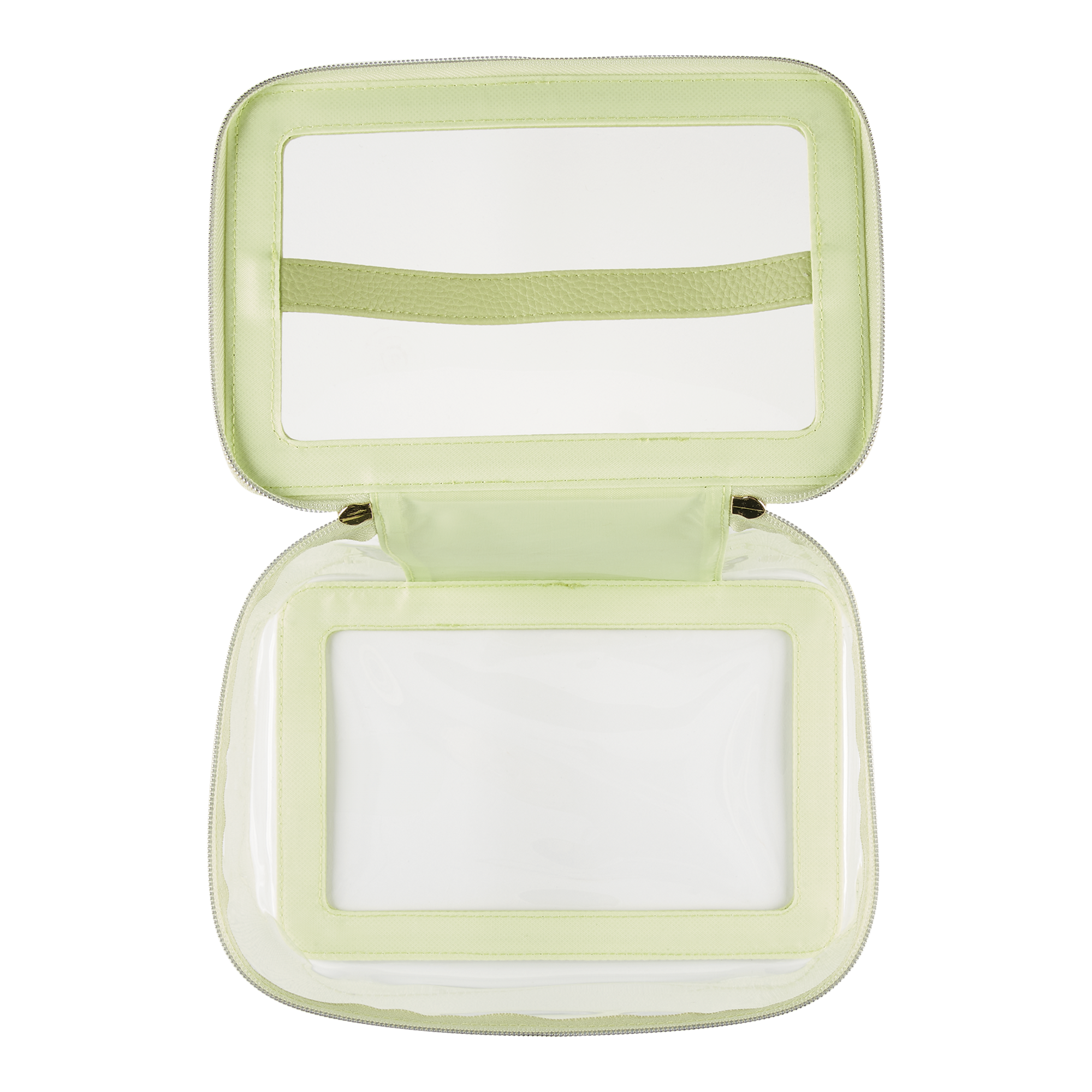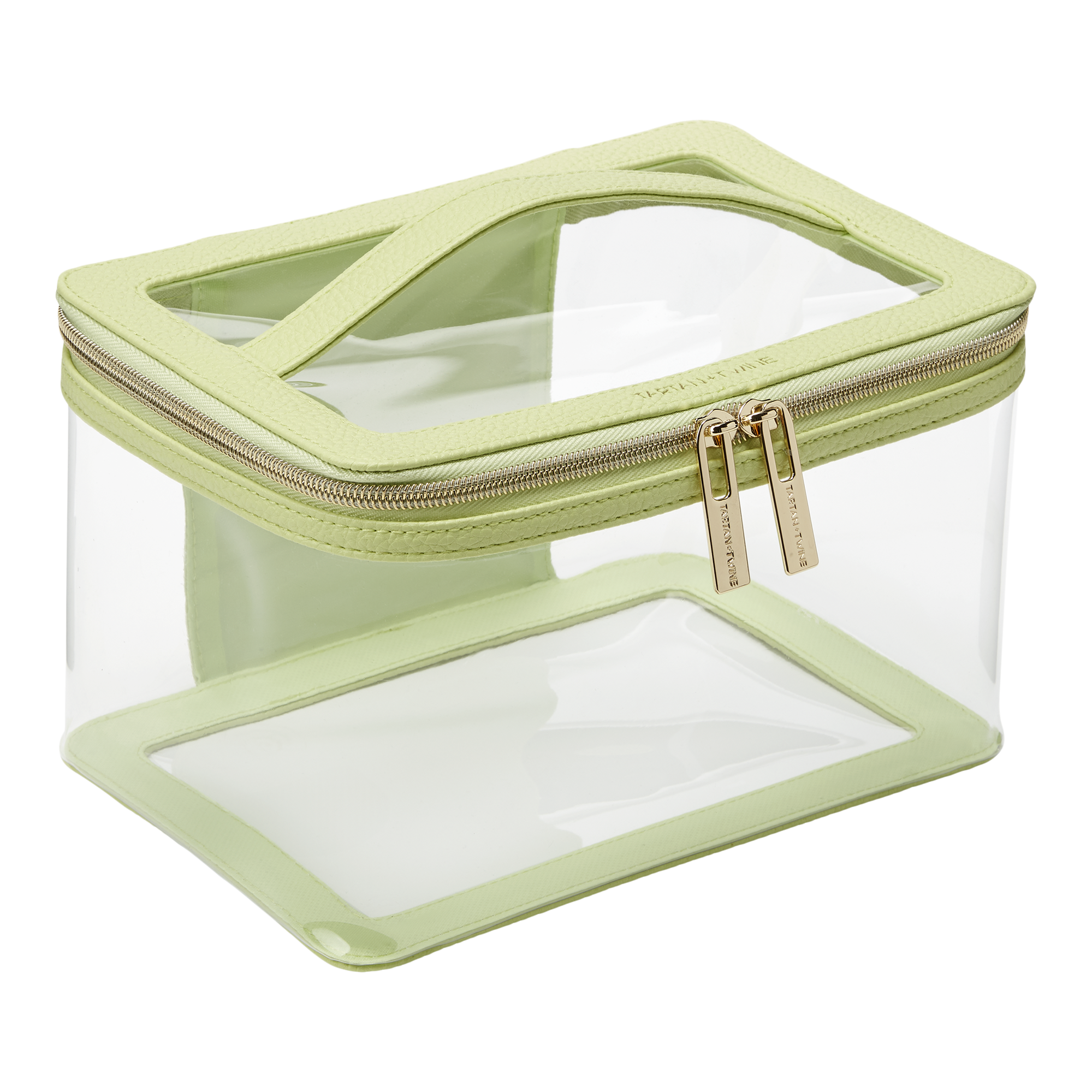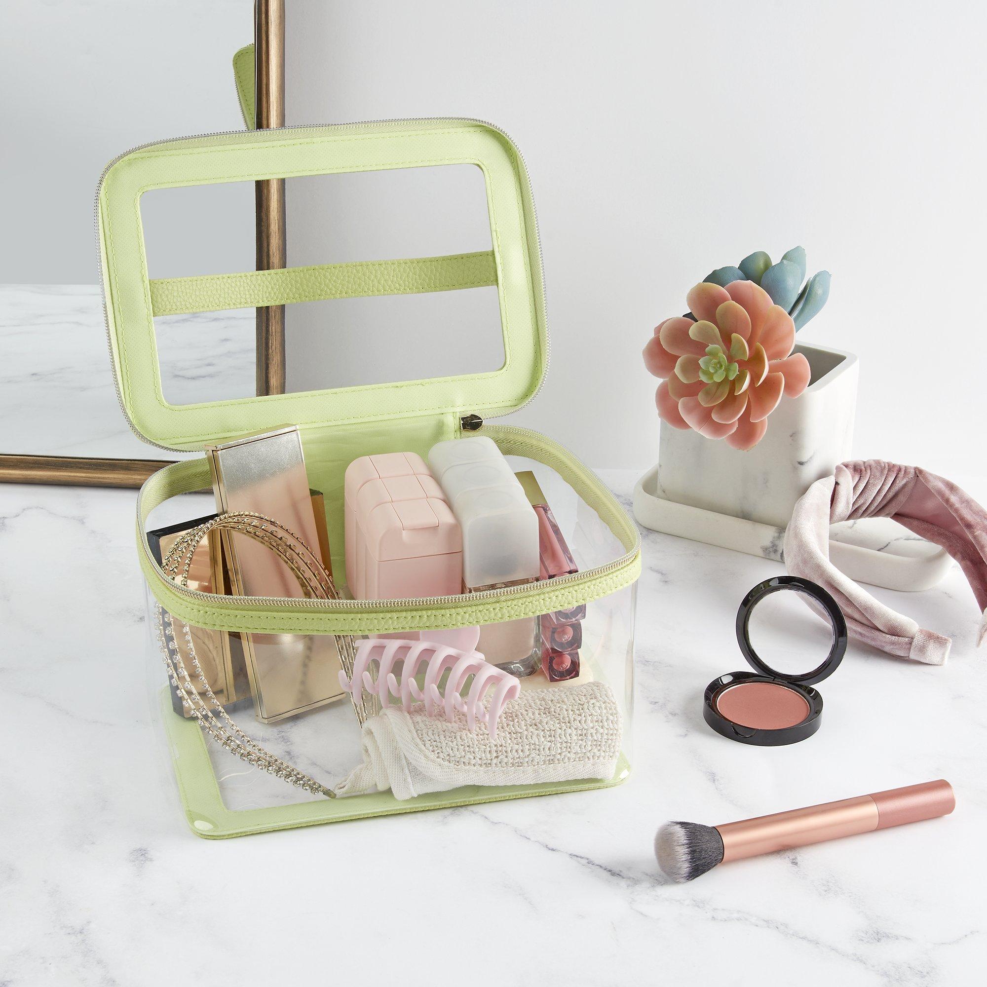 Pack up and go with the Tartan + Twine® clear Lime Green Train Case that holds your essential items. Perfect size for storing items at home, too.