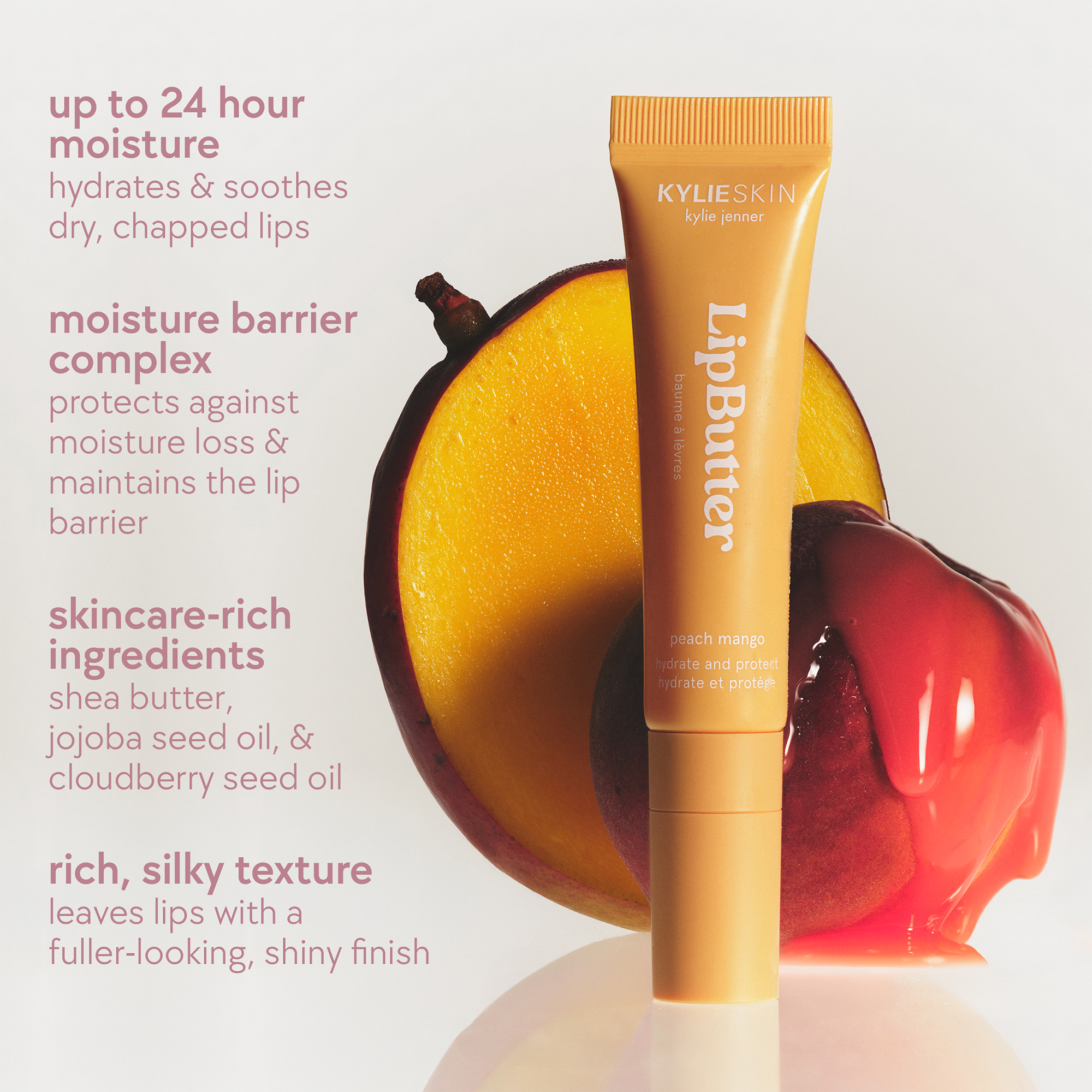 The Kylie Skin Lip Butter is an ultra-hydrating, barrier-protecting formula for a healthy-looking, pouty lip. This skincare-rich, shiny lip balm instantly quenches dry, chapped lips in silky moisture for up to 24 hours, maintains the skin barrier, and visibly improves the look of lip lines.