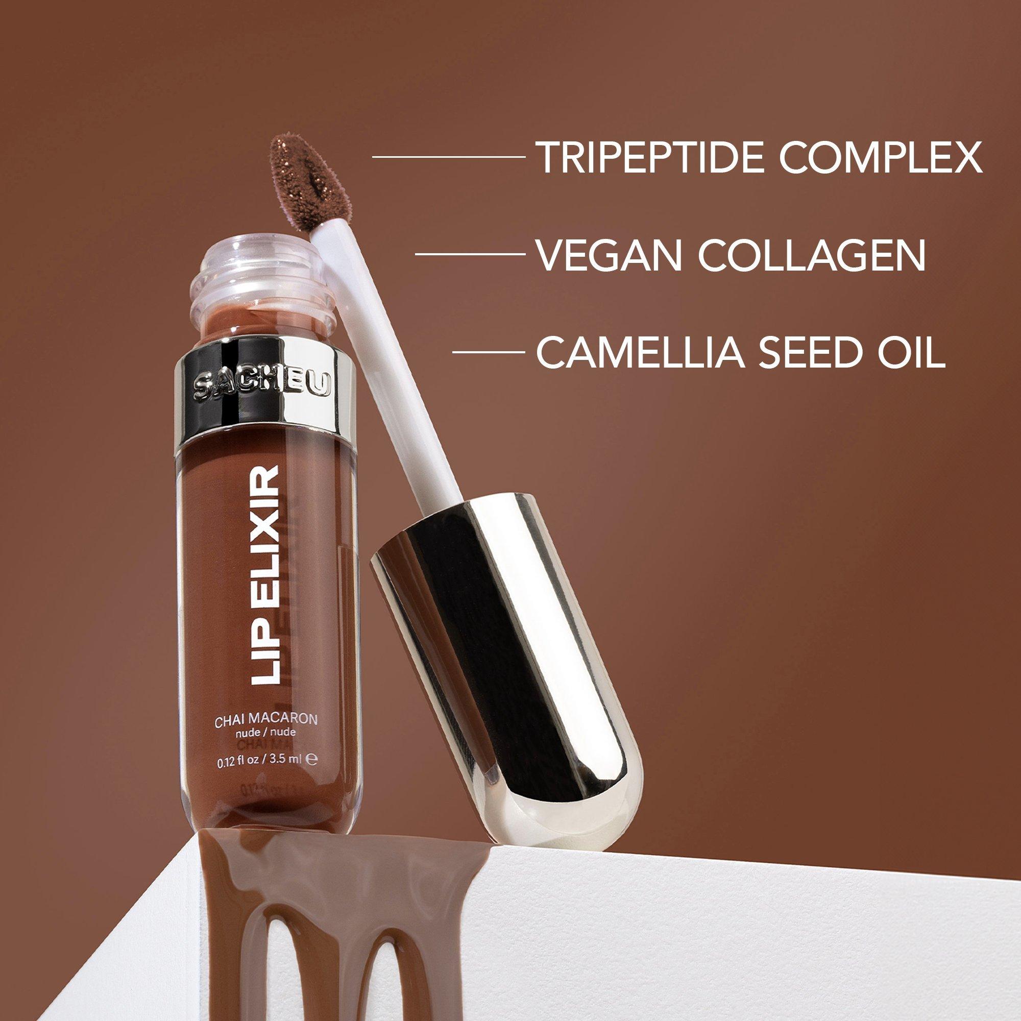 Sacheu Beauty's Lip Glaze Elixir is a plush lip glaze powered by a cocktail of unique oils that deliver thirst-quenching hydration and nourishment with a high-shine and non-sticky finish.