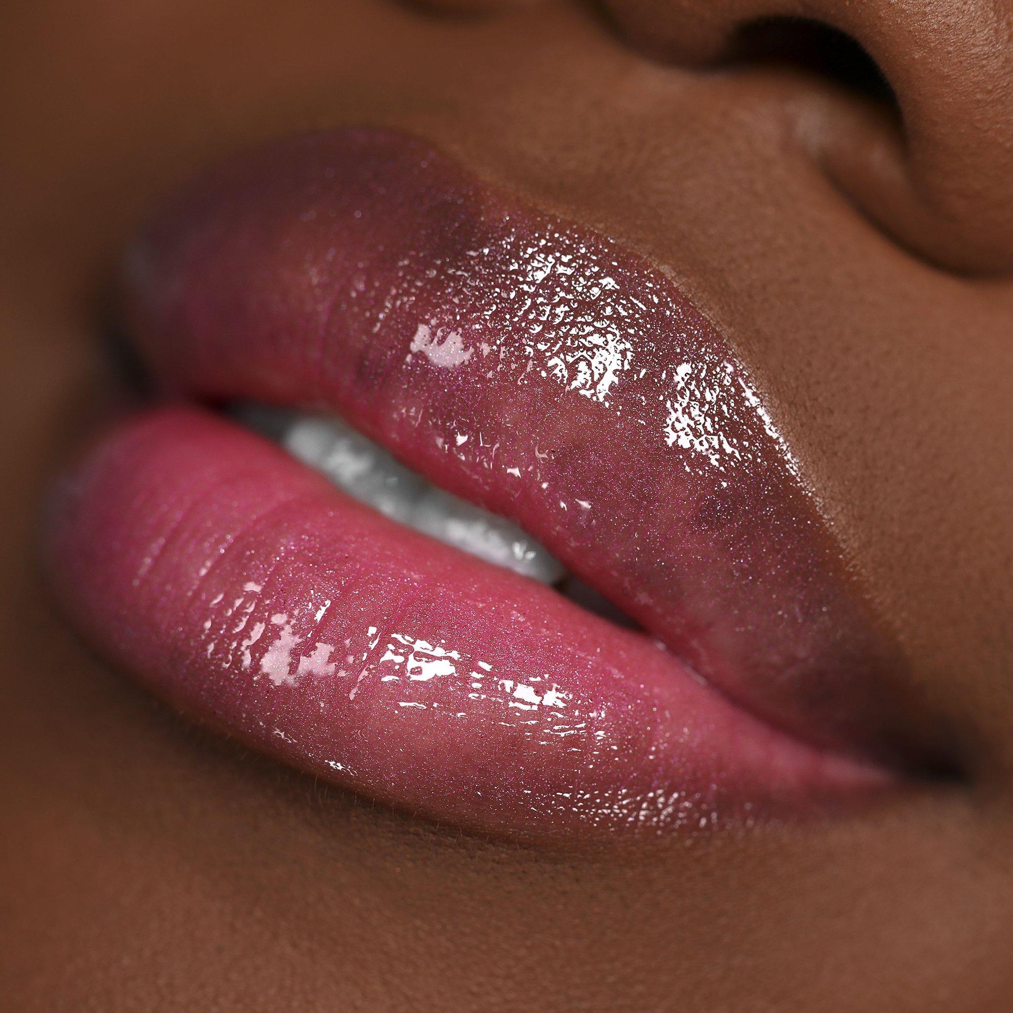 Using applicator, apply in broad strokes to cover lip, or apply to the center of lip over lipstick to add dimension