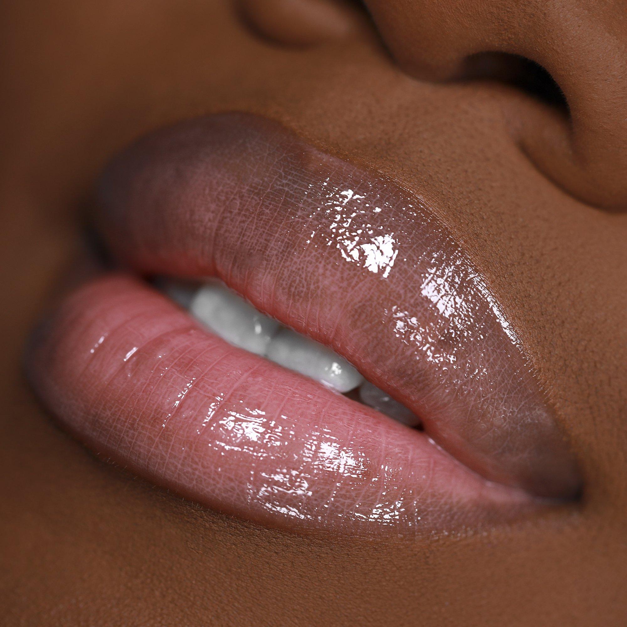 Using applicator, apply in broad strokes to cover lip, or apply to the center of lip over lipstick to add dimension