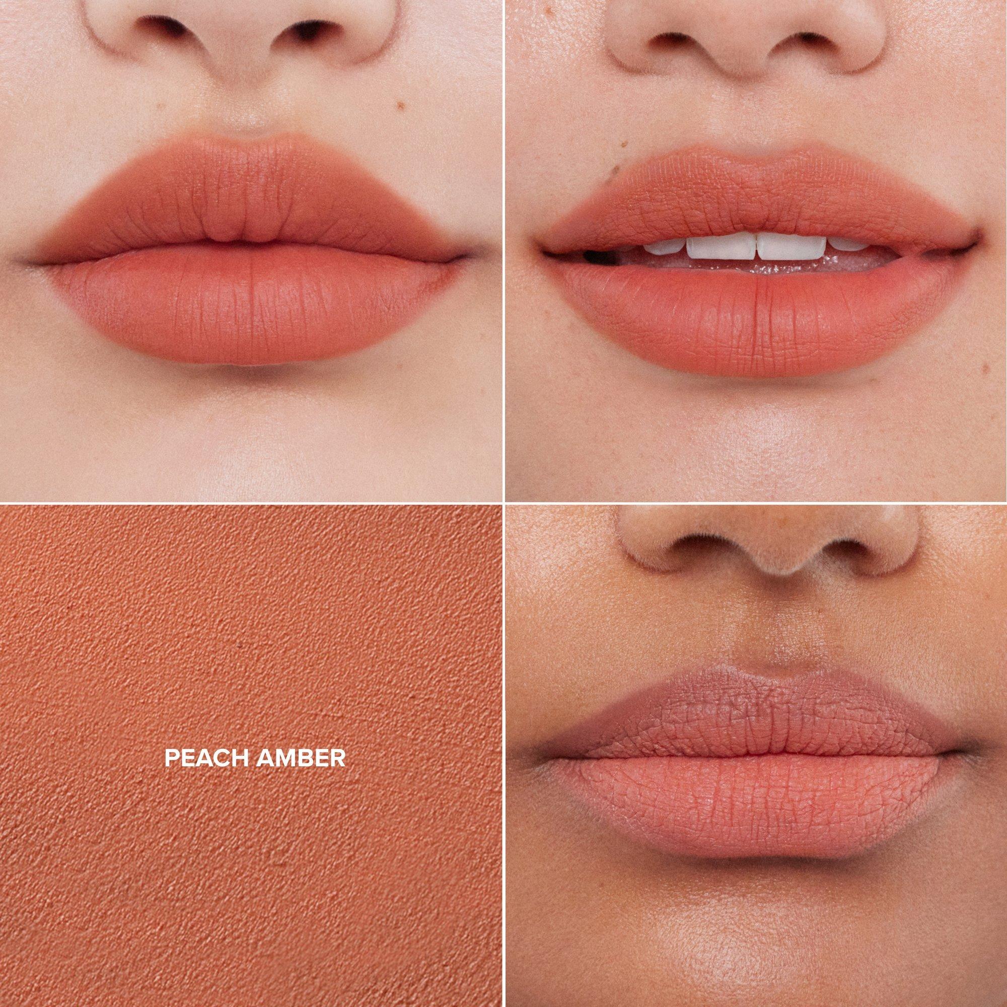 Using the point of the wand, trace cupids bow to center lip shape and line outer edges. Gently swipe flat paddle edge of wand across lips in one smooth gesture for full-pigment, true-matte soft focus color.