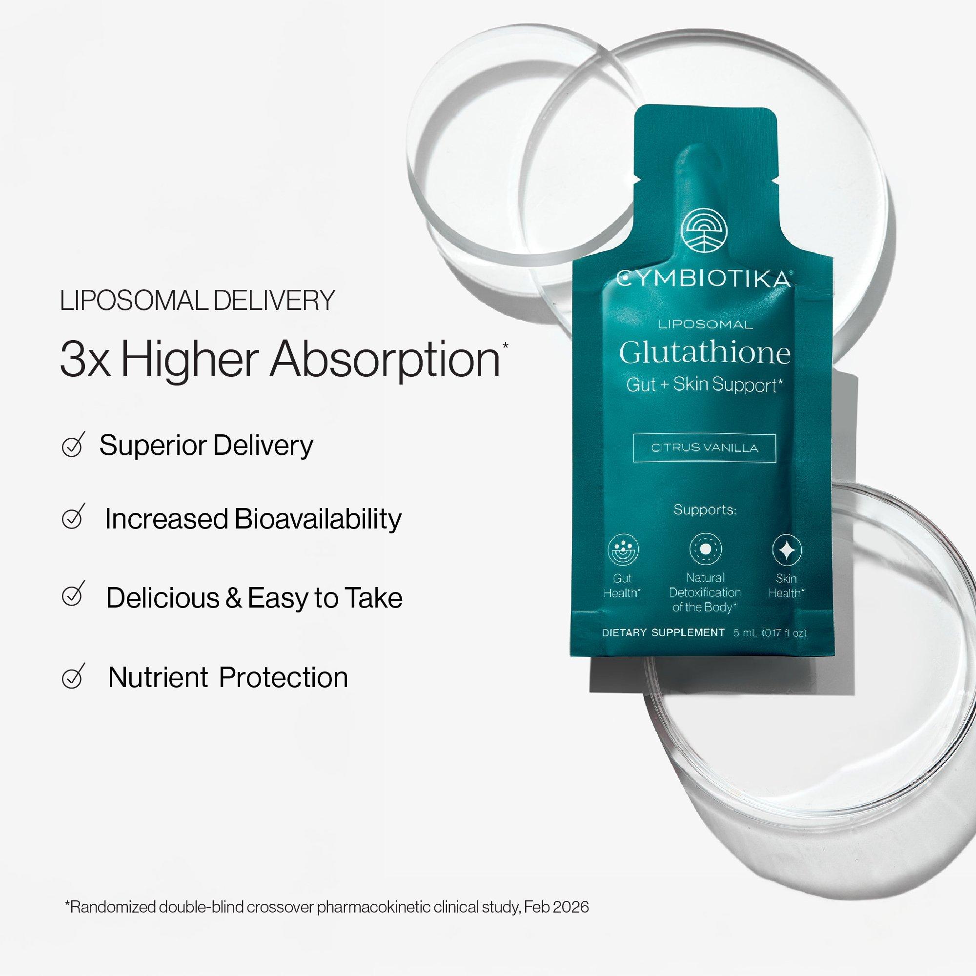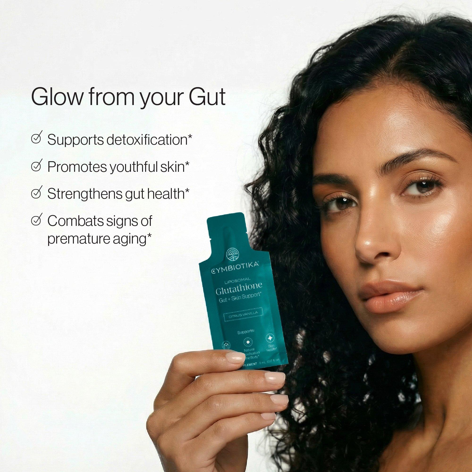 Cymbiotika’s Liposomal Glutathione supports the liver’s natural detoxification, offers antioxidant support for radiant skin, and promotes gut health.* Often called the “master antioxidant,” glutathione plays a vital role in detoxification and protecting cells from oxidative stress.*