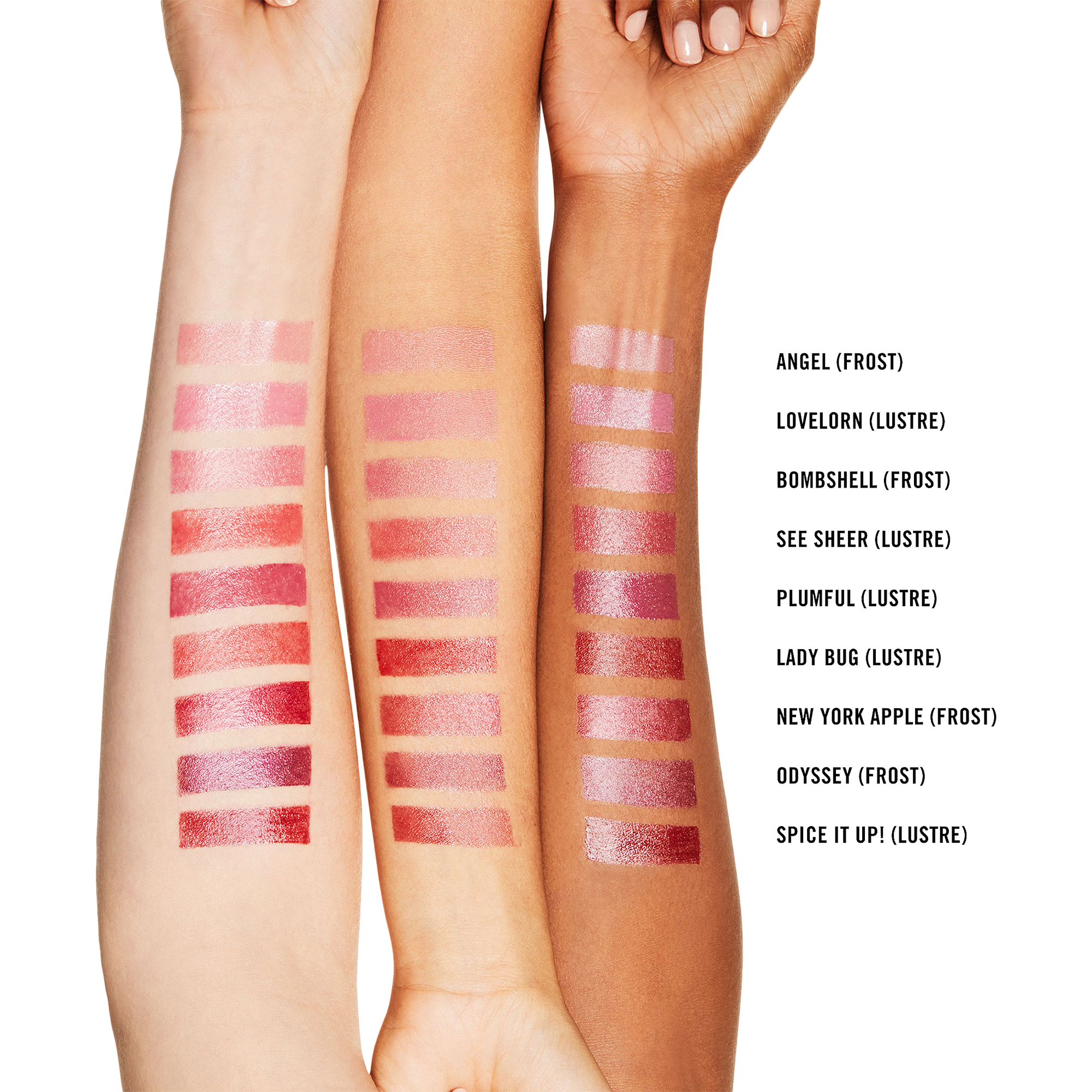 MAC Lipstick Shine has a pearlescent lipstick formula with smooth, medium buildable coverage and a semi-lustrous finish.