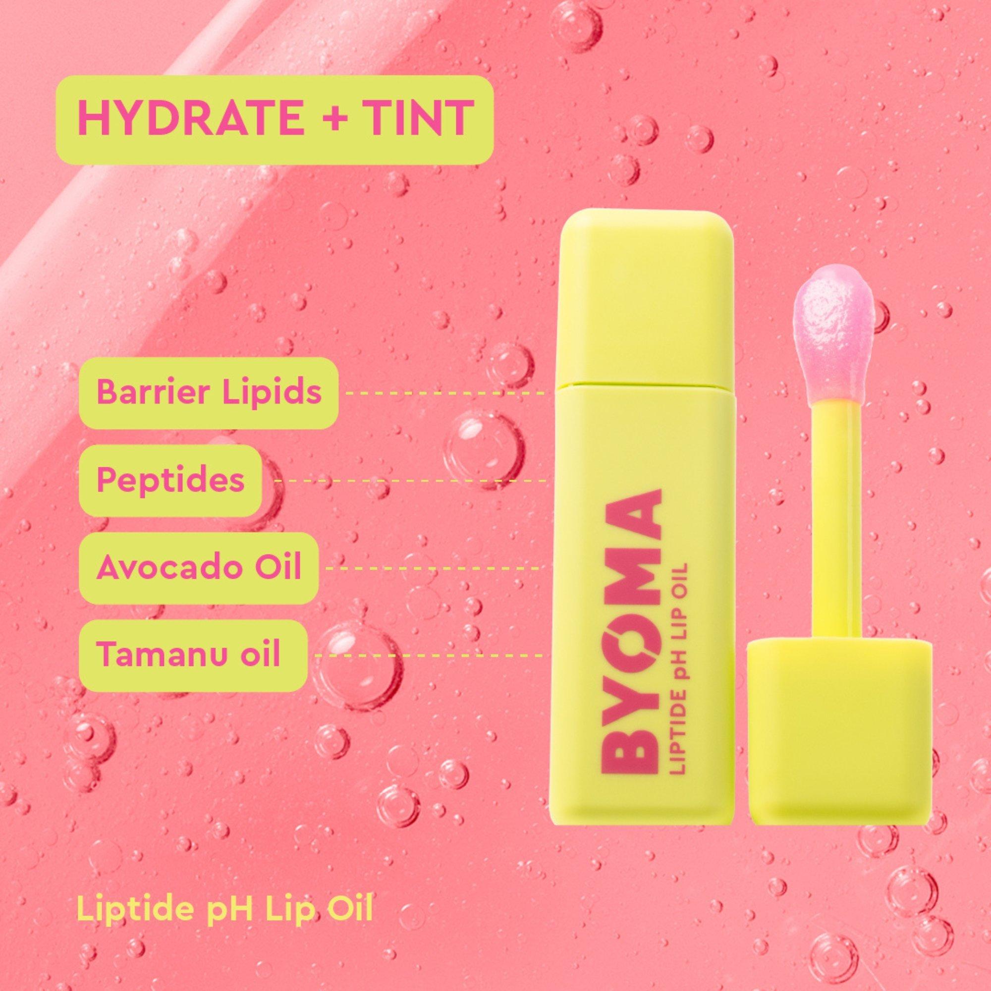BYOMA Liptide pH Lip Oil is a glossy, lightweight lip oil with a soft, flushed tint that adapt to your lips' natural pH– cushioning and conditioning without stickiness. Peptide-rich Liptide Complex + hydrating Avocado + Tamanu Oils instantly nourish, plump and soften.