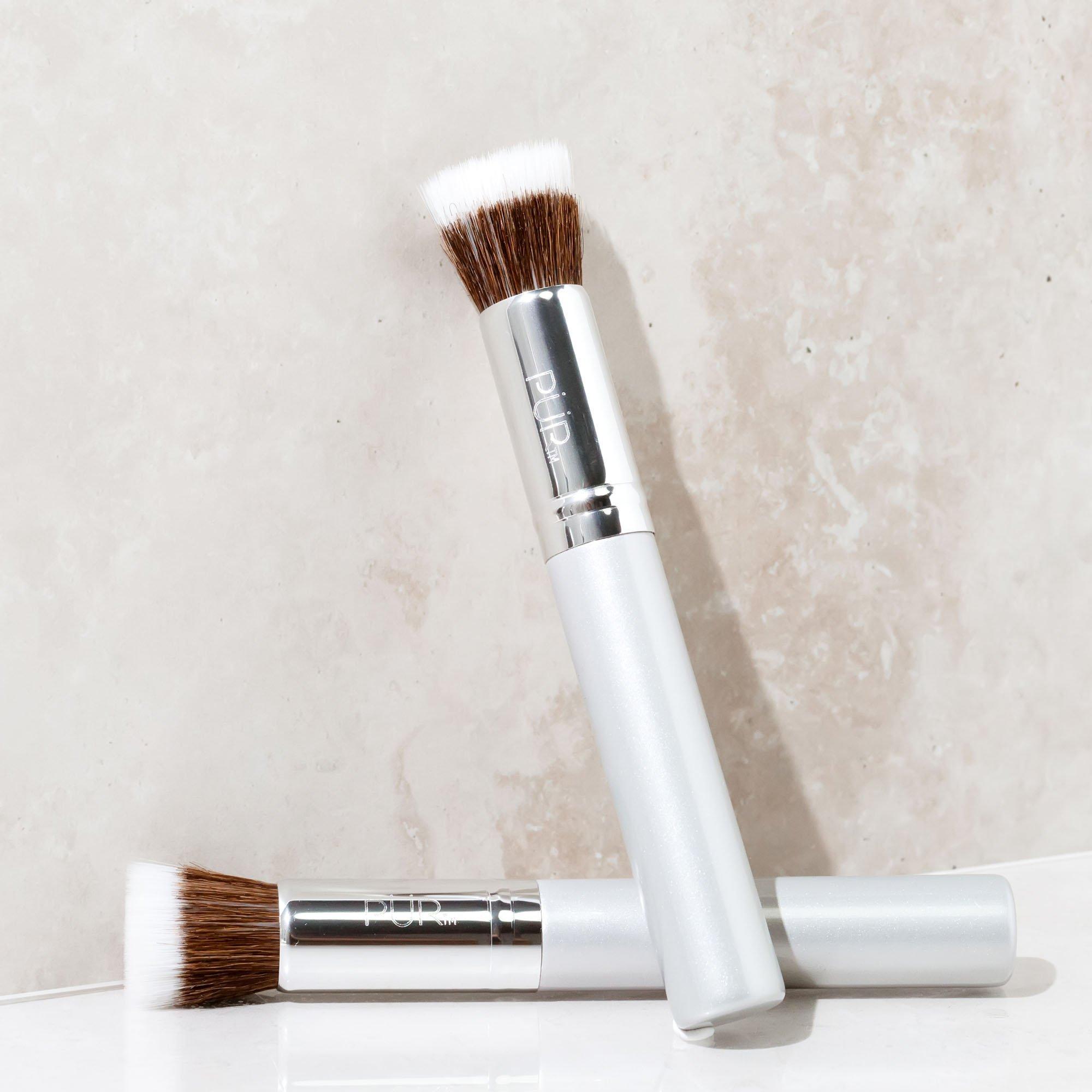 PÜR Liquid Foundation Chisel Makeup Brush delivers flawless foundation application. This professional-quality tool creates an airbrushed finish with liquid formulas.