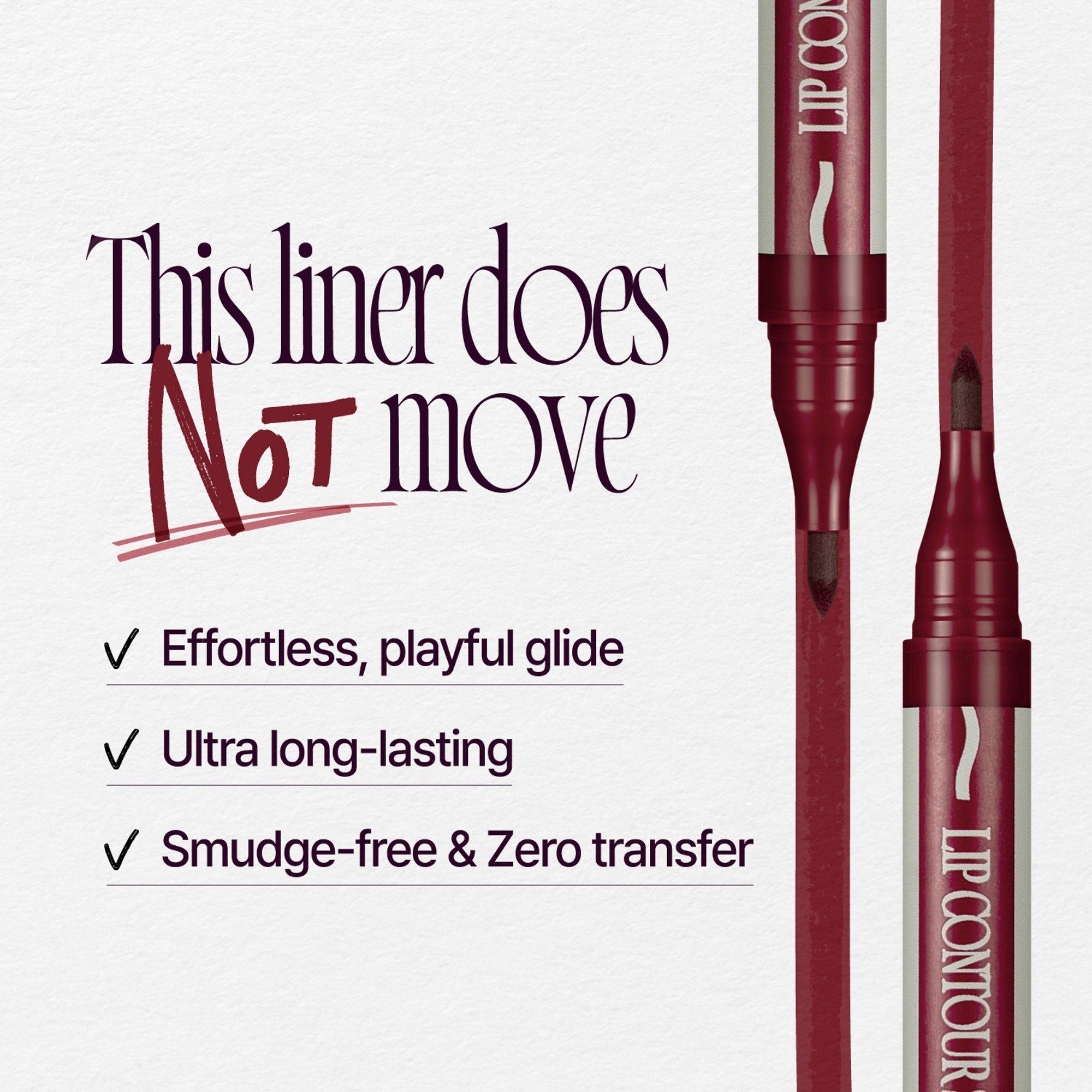 fwee's Lock'n Line Lip Contour Stain glides on smoothly for precise lip definition. High-adhesion, quick-setting, and transfer-proof, it locks color in place for beautifully defined lips anytime, anywhere.