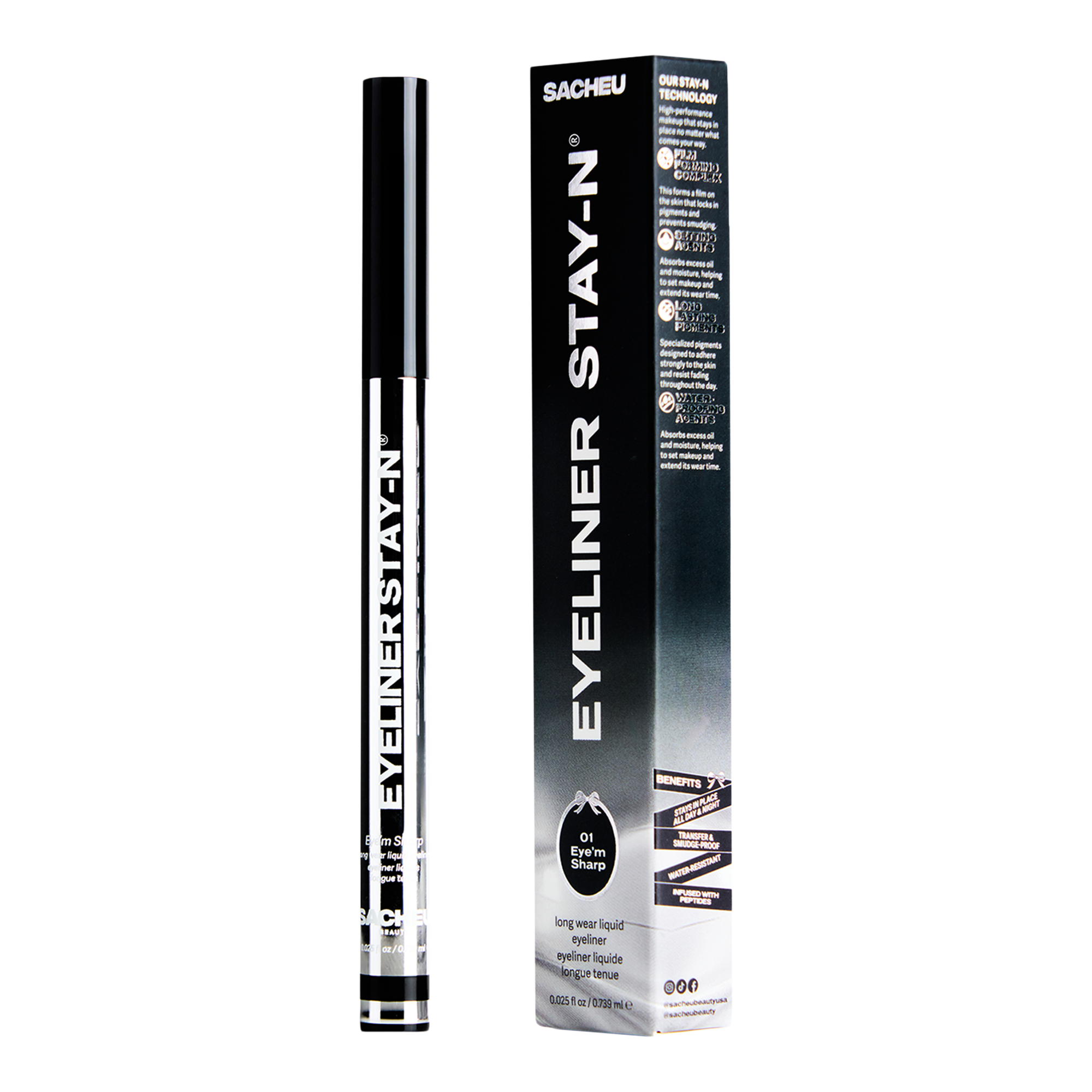 Get bold, defined eyes with long-wearing, smudge-proof Long Wear Liquid Eyeliner STAY-N from Sacheu Beauty. This ultra-pigmented formula stays sharp all day, while the 360° applicator ensures effortless precision.