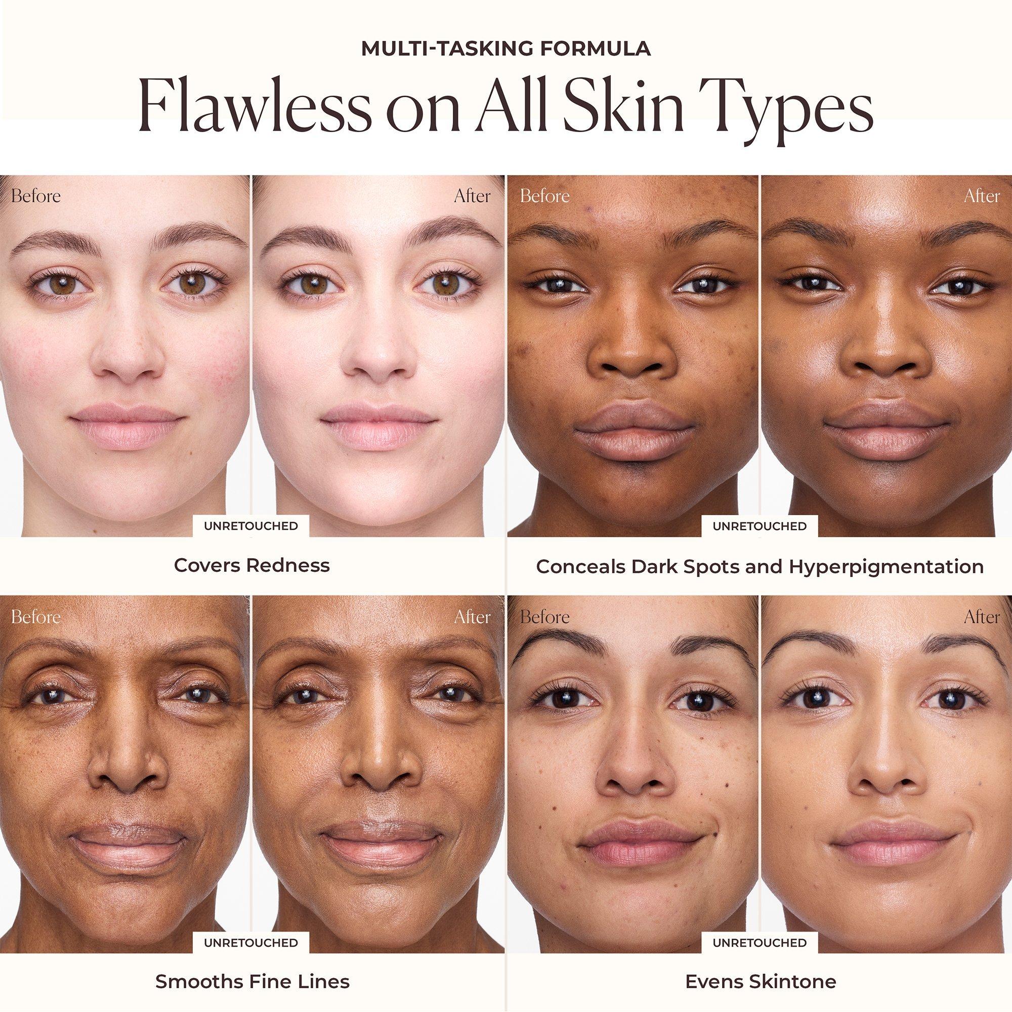 To build more coverage, pick up product on the back of hand using a foundation brush and work Tinted Moisturizer into the bristles on a clean area on back of the hand. Stipple onto any areas that need additional coverage.