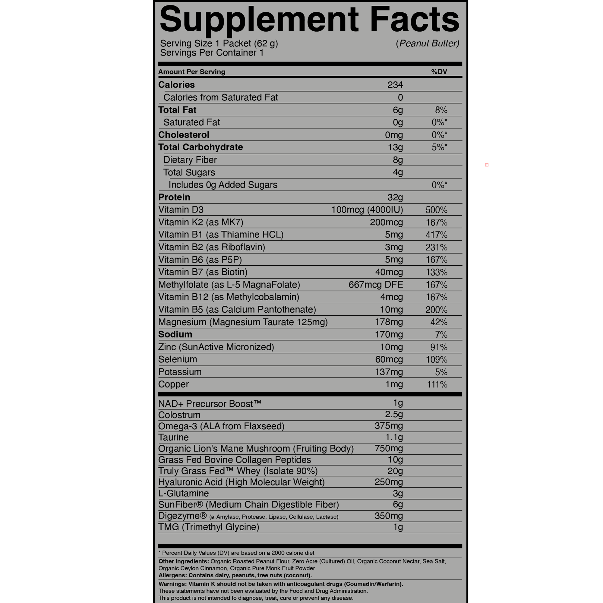 Allergens: Contains dairy and peanuts.