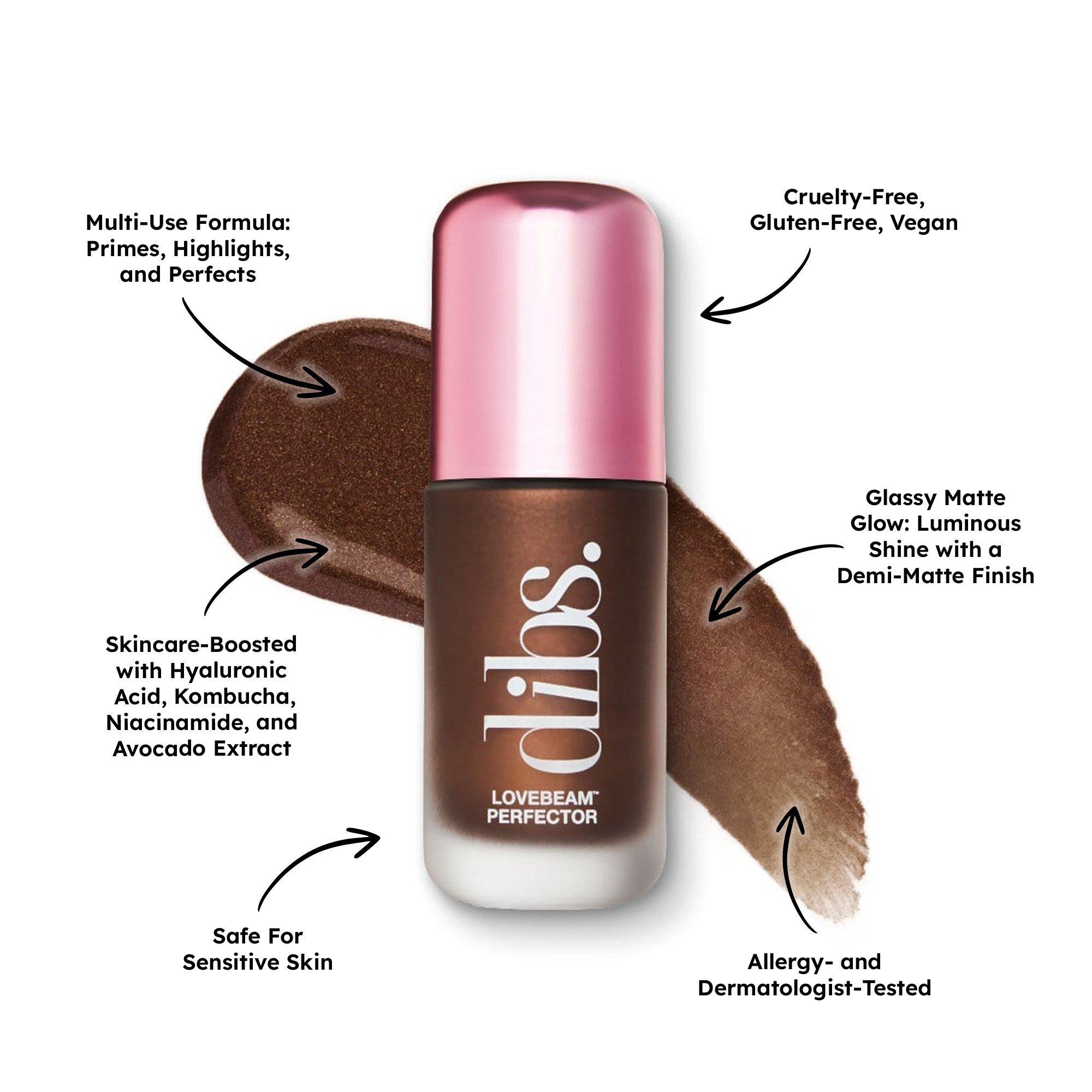 DIBS Beauty's LoveBeam Perfector delivers a skincare-boosted formula that blends primer benefits with a highlighter sheen for diffused, glassy-matte skin.