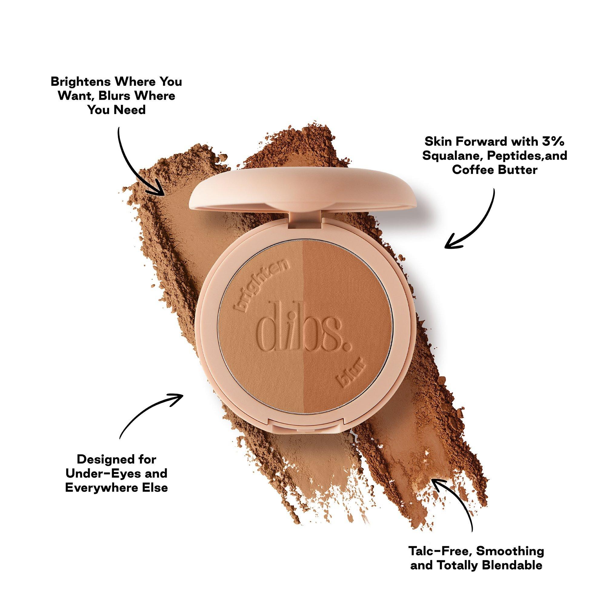 DIBS Beauty LoveBeam Setting Powder brings together two complementary powders—one to brighten, one to blur—for a soft-focus diffused finish.