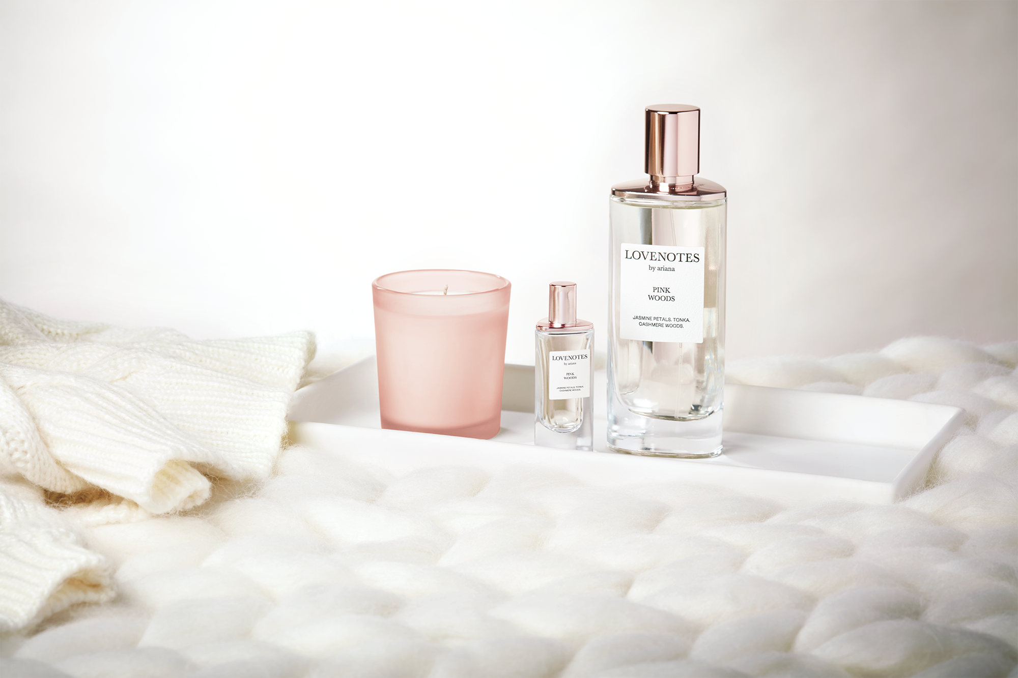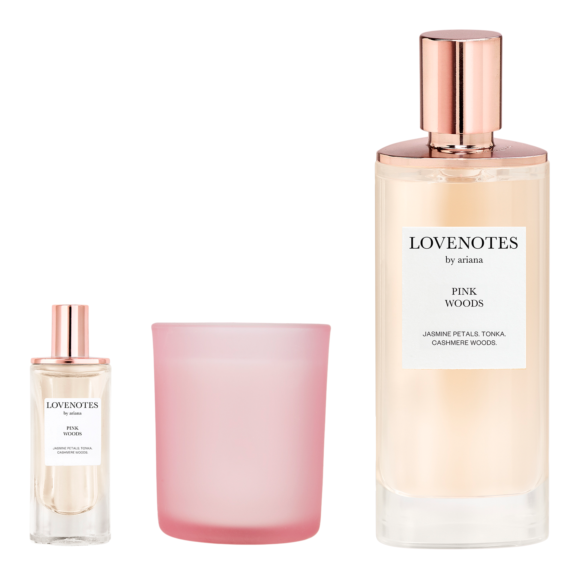 Wrap yourself in the scent of the season – Lovenotes Pink Woods by Ariana Grande. This must-have giftset features the captivating Pink Woods fragrance and a limited-edition Candle.
