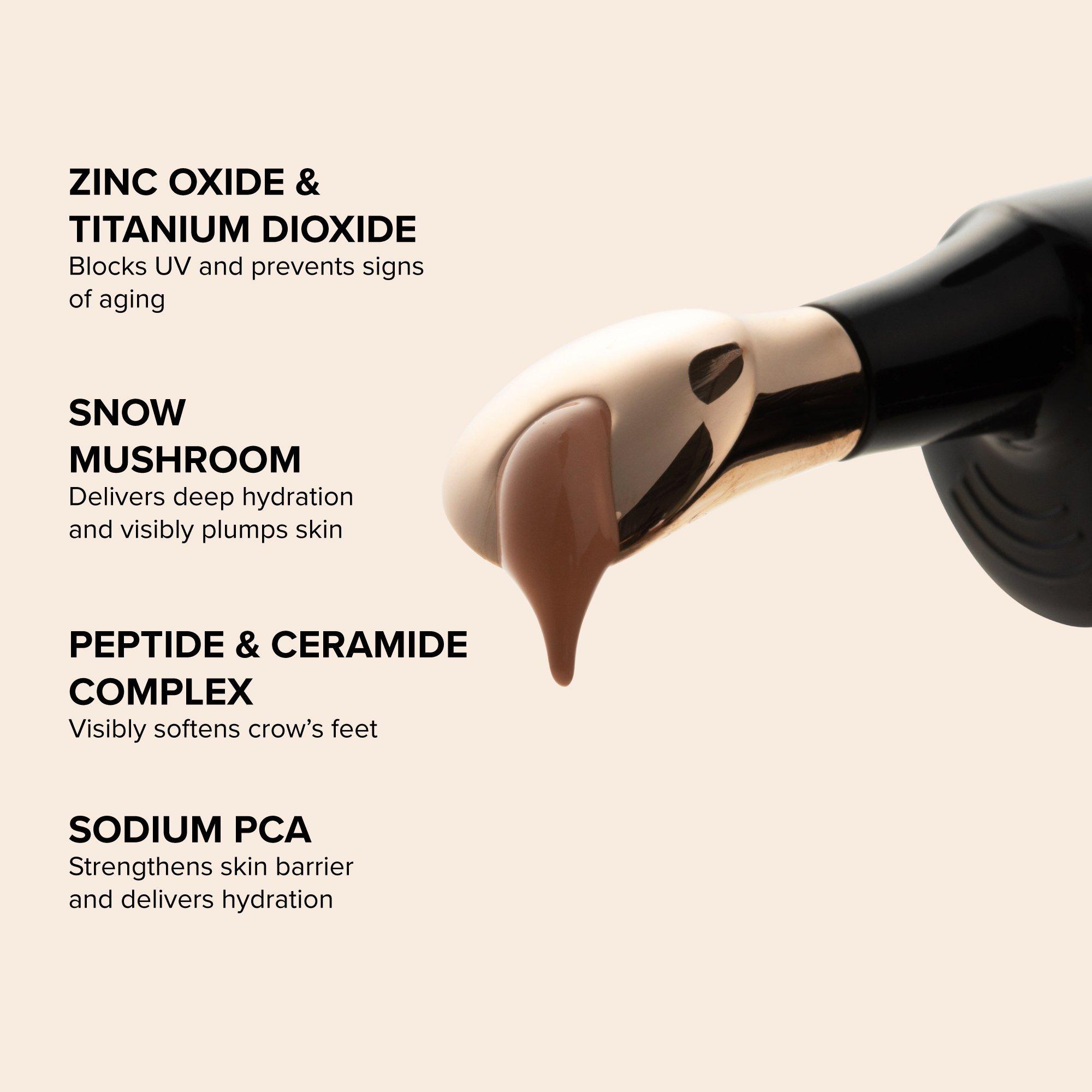 Vanish the look of dark circles, visibly smooth out fine lines, and protect eyes from photoaging with this 3-in-1 SPF eye corrector. Powerhouse anti-aging ingredients like peptides, snow mushroom, and ceramides hydrate and firm the look of fine lines. Available in multiple shades.