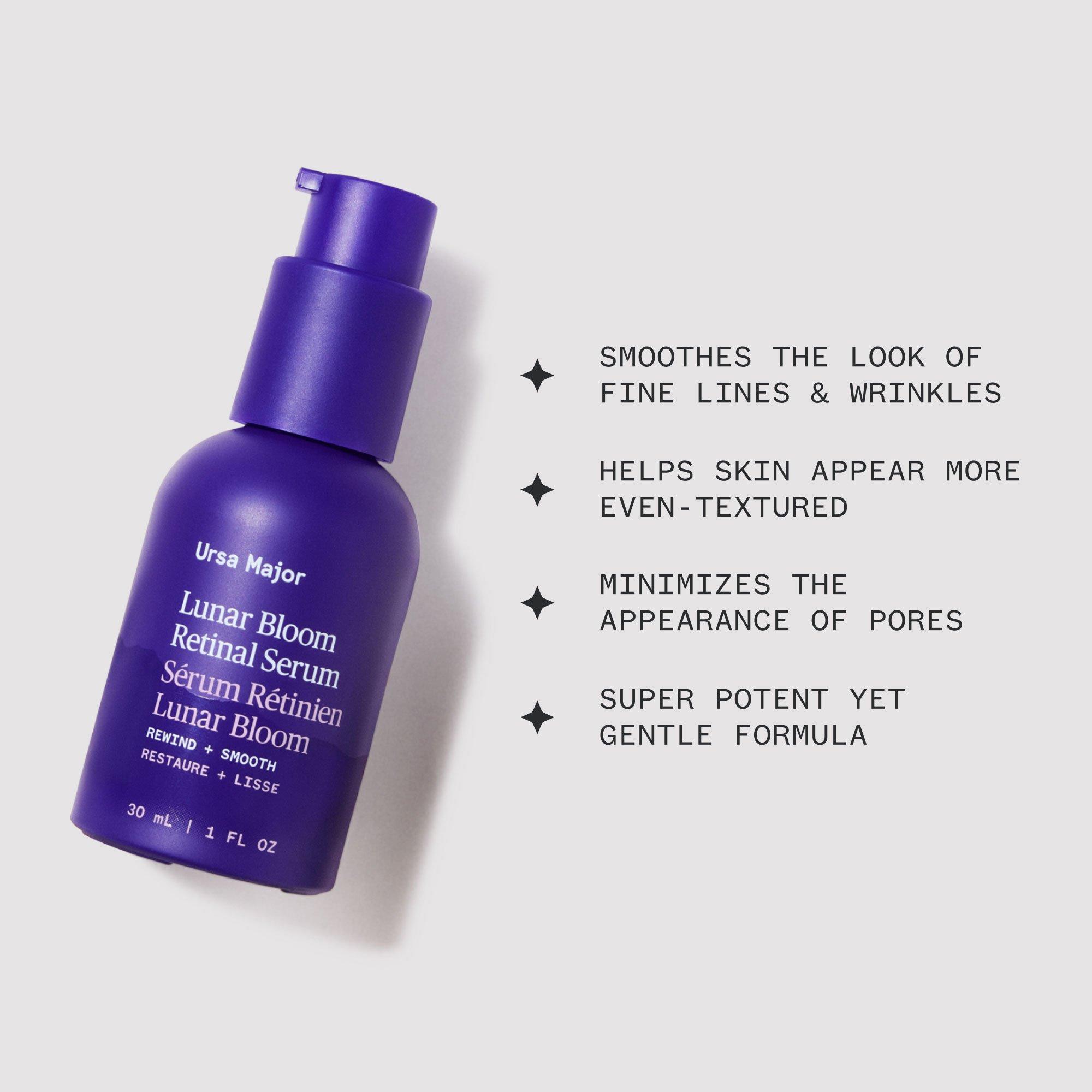 A renewing nighttime formula, Ursa Major’s Lunar Bloom Retinal Serum pairs potent vitamin A derivative retinal with clean, forest-found actives to help smooth skin texture and rewind the look of fine lines.