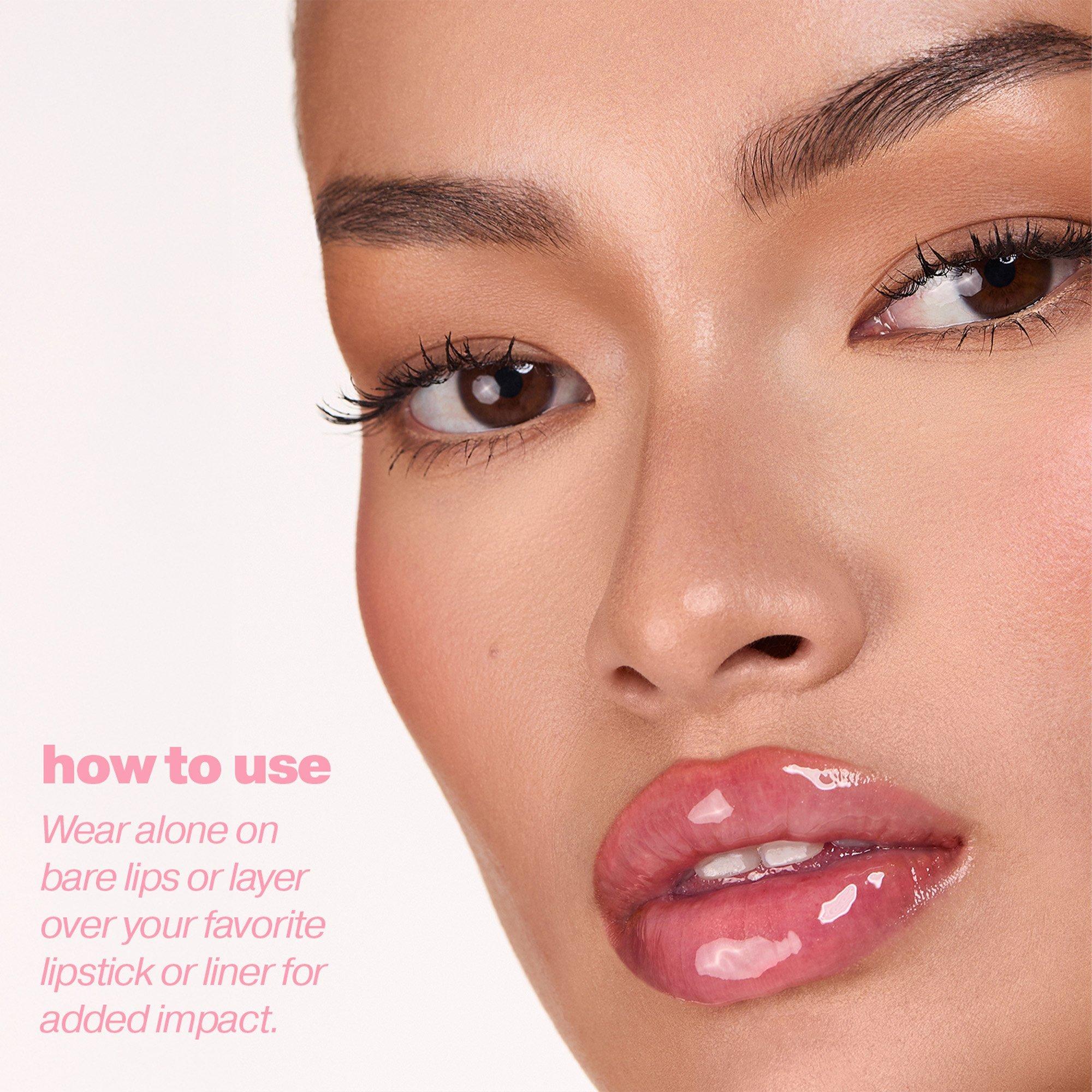 For a trend-led 90's contoured lip look, wear this sheer oil with a deep nude shade of a lip liner.