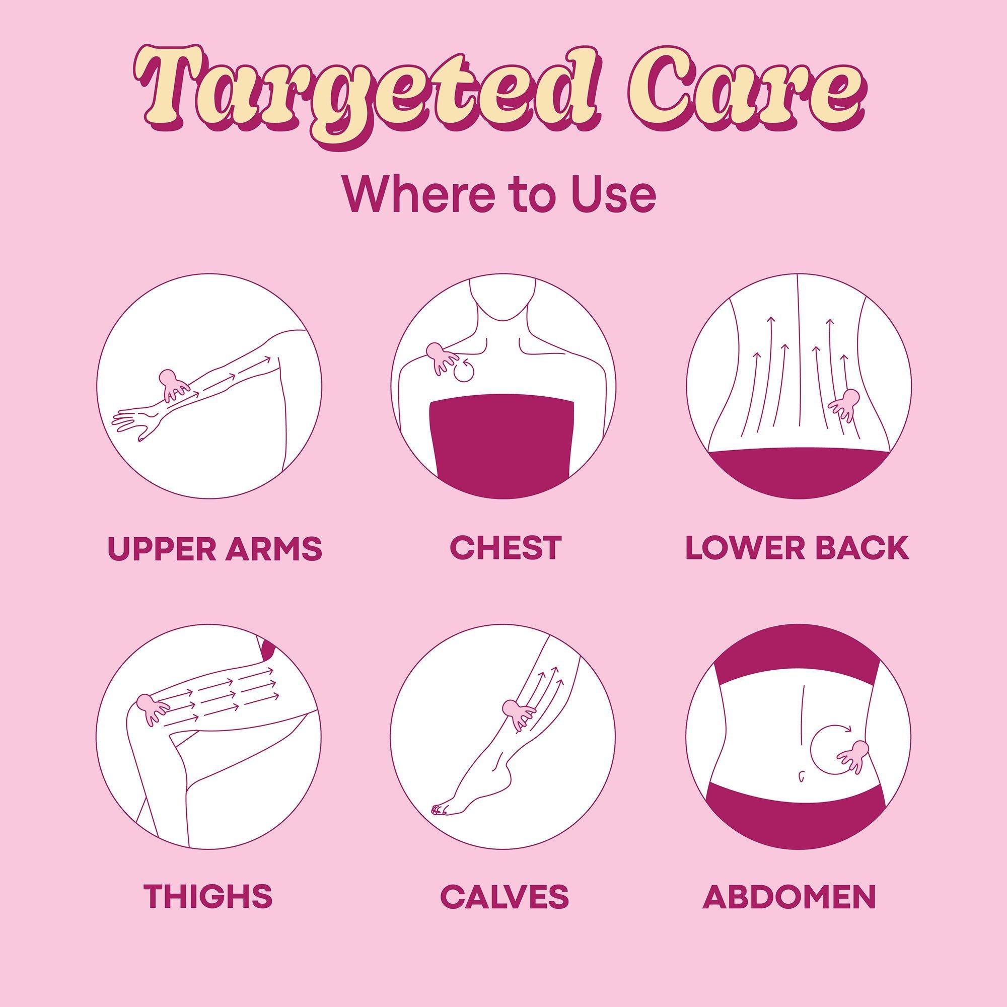 Use upward strokes focusing on thighs, hips, and other areas prone to cellulite, following the natural flow of your lymphatic system. Apply with the Plum Bum Tightening Serum for enhanced glide and best results.