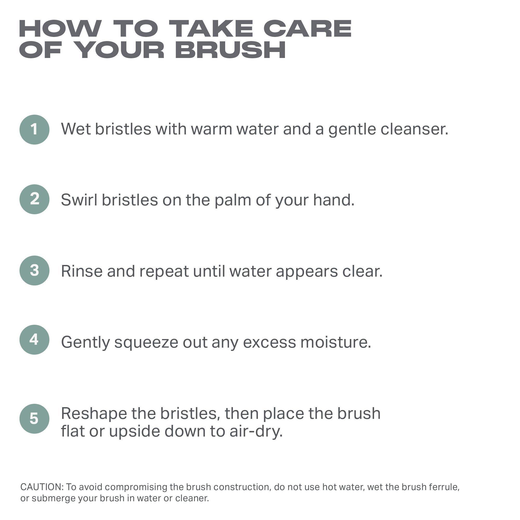 To avoid compromising the brush construction, do not use hot water, wet the brush ferrule, or submerge your brush in water or cleaner.