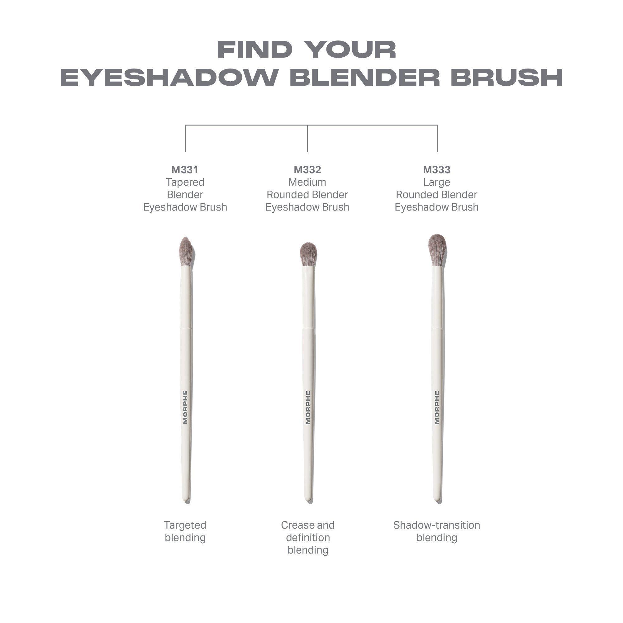 Morphe's M331 Tapered Blender Eyeshadow Brush has a fluffy tip with a precisely cut taper that makes it perfect for targeted blending. Use it to sweep on and buff out eyeshadow in your creases. It will maintain color concentration, while diffusing out harsh lines.