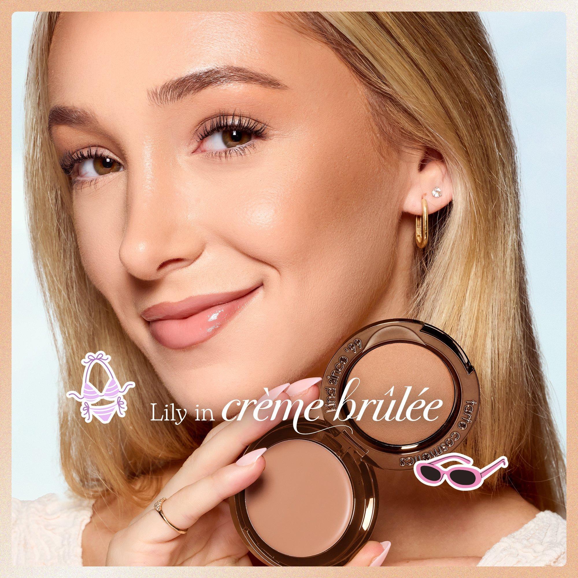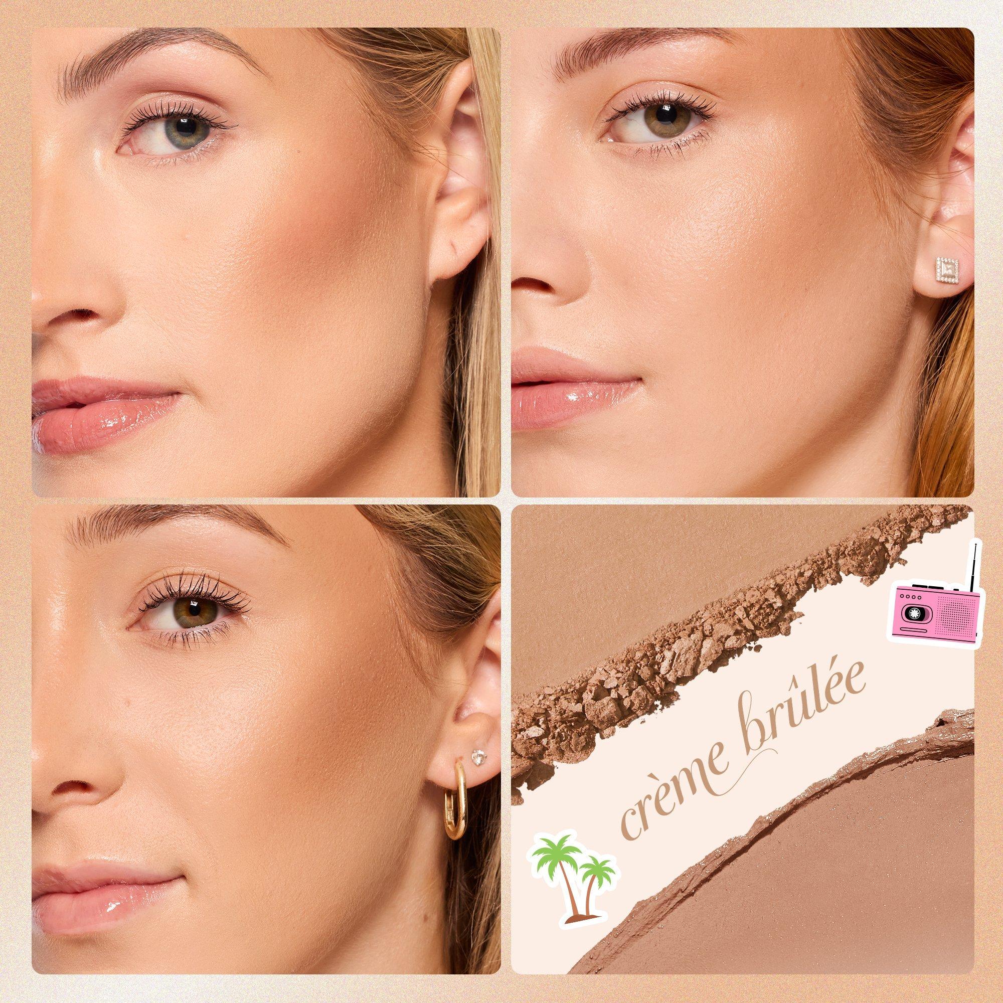 Sweep baked bronzer powder over cream or areas of the face you want to warm up for a sunkissed effect.