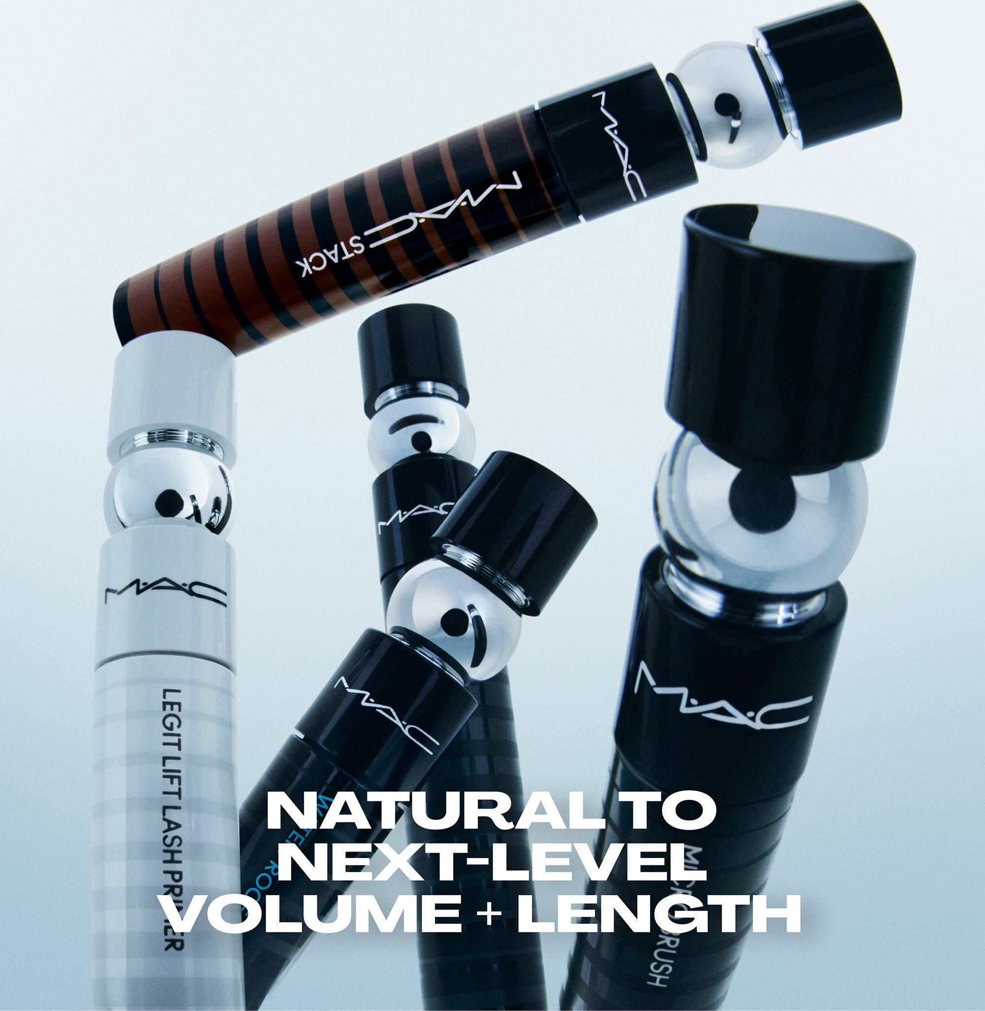 Macstack Mascara Superstack: Stack on infinite layers of volume + length with this never-before-seen endlessly buildable, clump resistant volumizing mascara. Gives you customizable volume from natural to next-level. -- Now in an all-new brown hue inspired by MAC's iconic Lip Pencil in Chestnut.