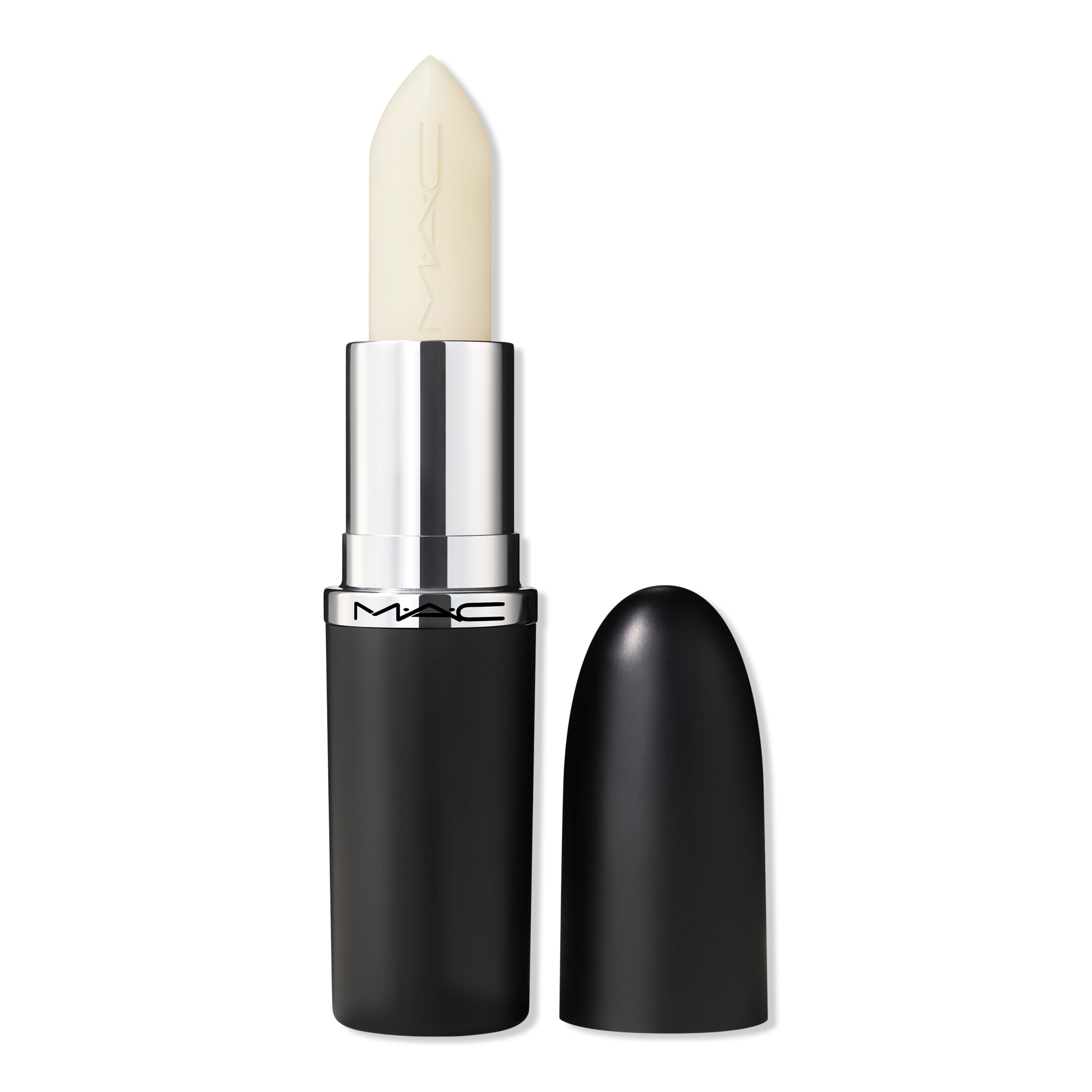 MAC M·A·Cximal Sleek Satin Lipstick Colorless is a transparent lip balm with a sleek satin finish that hydrates lips for eight hours and doubles as a topcoat to polish off your look.
