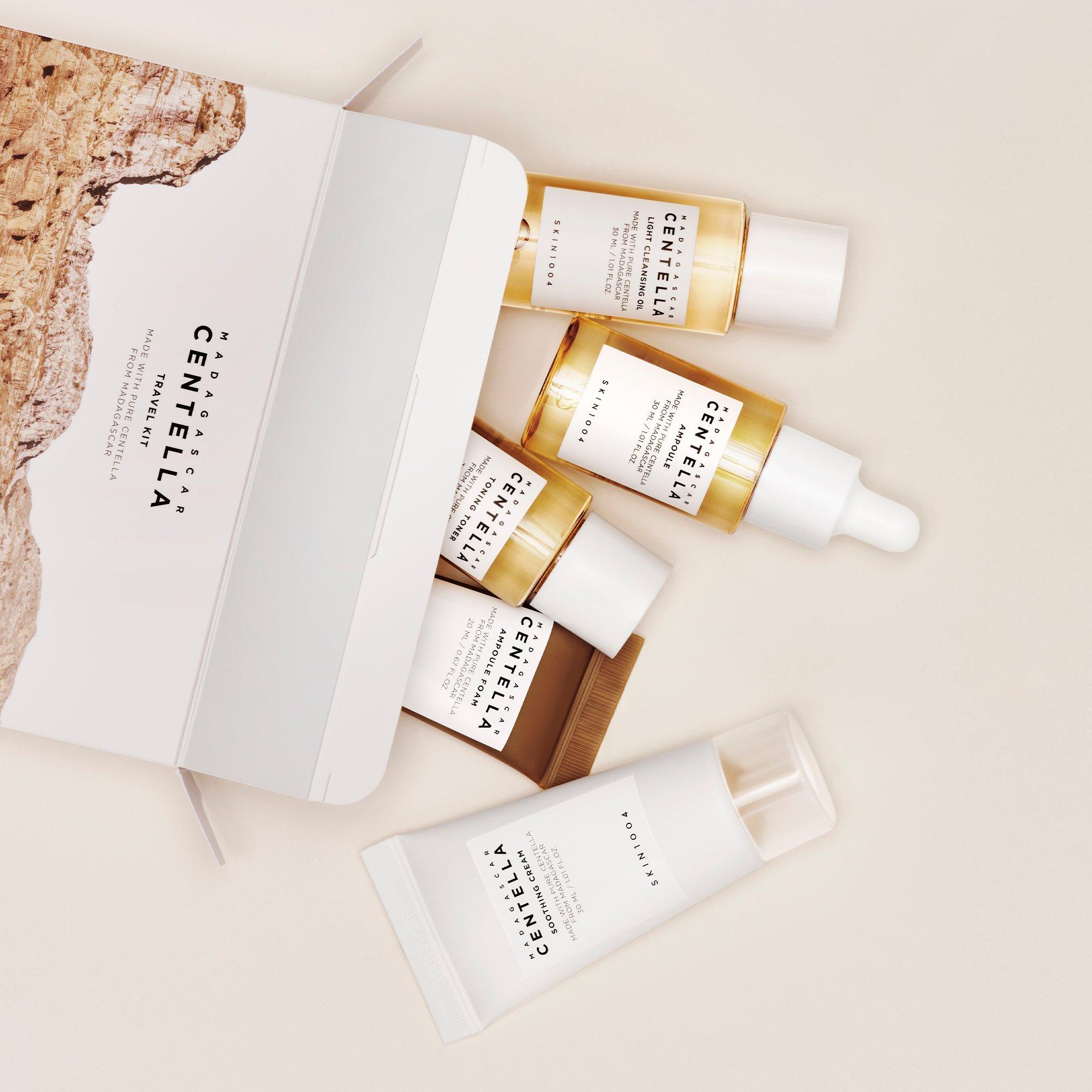 SKIN1004 Madagascar Centella Travel Kit is a full Centella skincare routine set with 5 mini-sized products for travel or to try the Centella line.