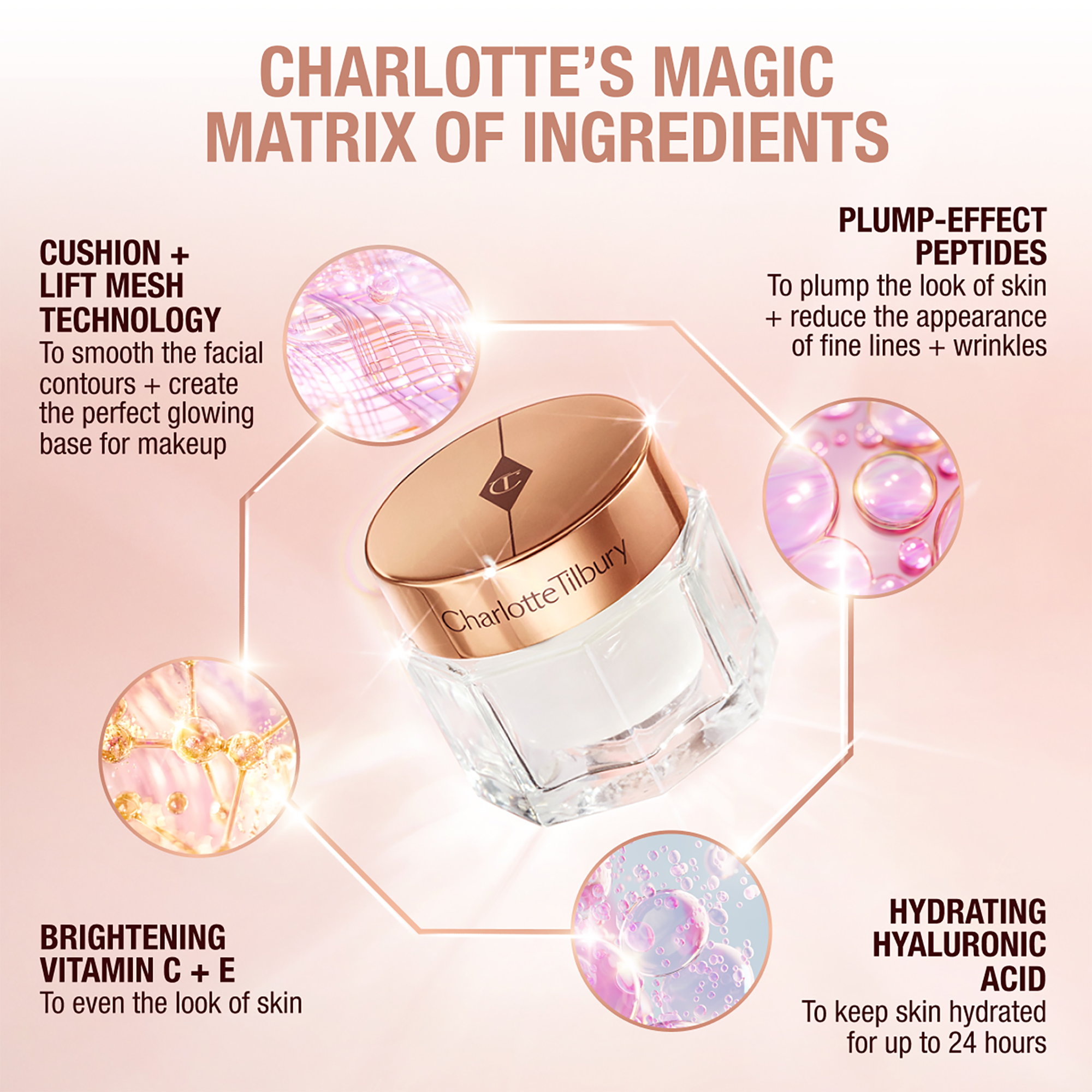 Charlotte Tilbury's Magic Cream Moisturizer with Hyaluronic Acid is a visibly age-defying moisturizer with hyaluronic acid to plump the look of skin and diminish the look of wrinkles, leaving your complexion visibly glowing and prepped for flawless makeup.