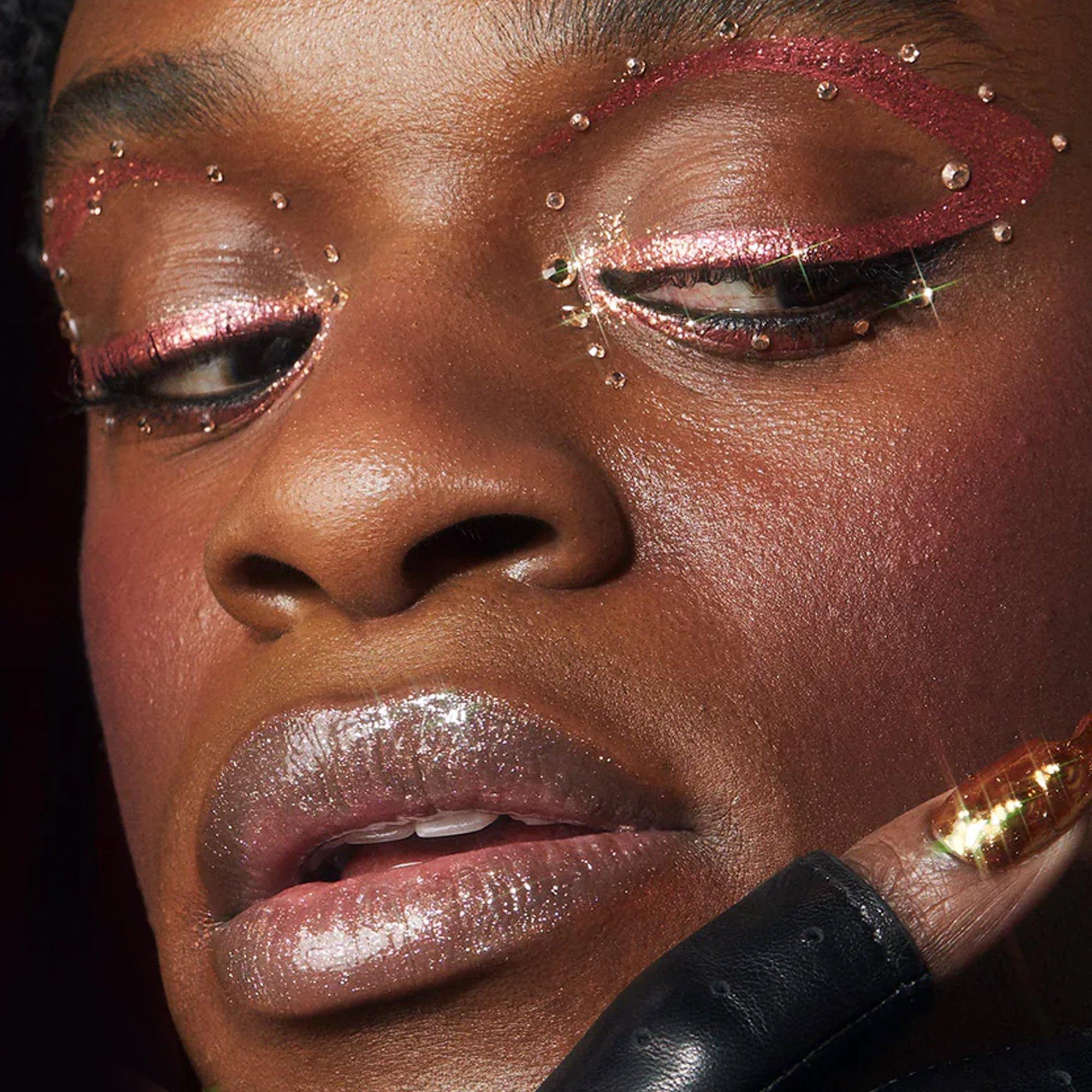 Use the flat edge of the applicator to fill in your lips, and the tapered tip to precisely line your lips. Build dimension and shine with multiple coats of sparkle.