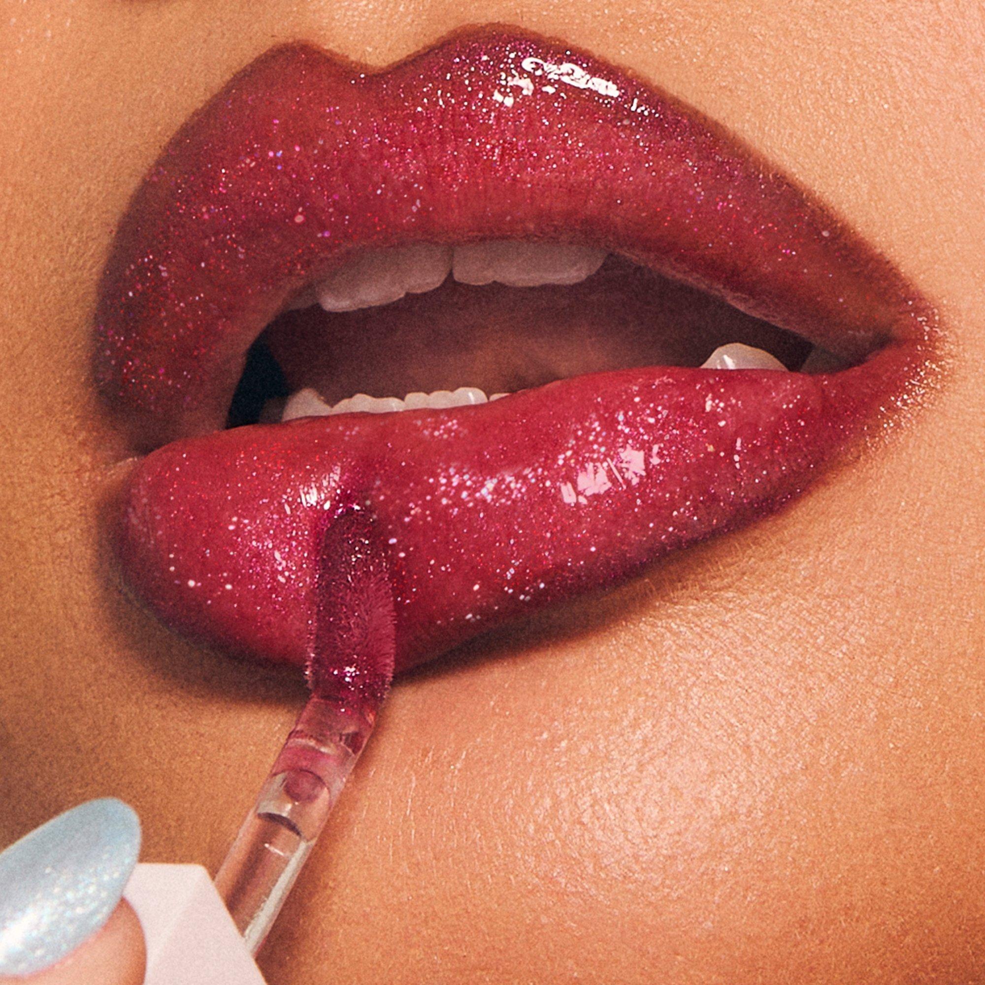 Use the flat edge of the applicator to fill in your lips, and the tapered tip to precisely line your lips. Build dimension and shine with multiple coats of sparkle.