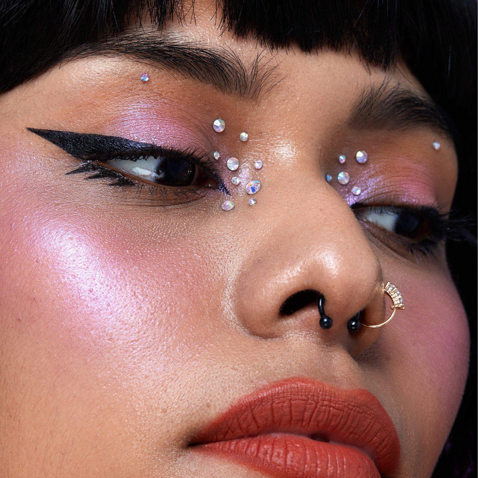 Shake the pen before use. Use the tip's thin, curved edge for precision lining - like outlining your wing or drawing wispy lashes. Use the tip's thicker, flat side for more coverage - like filling in your wing or creating graphic designs.