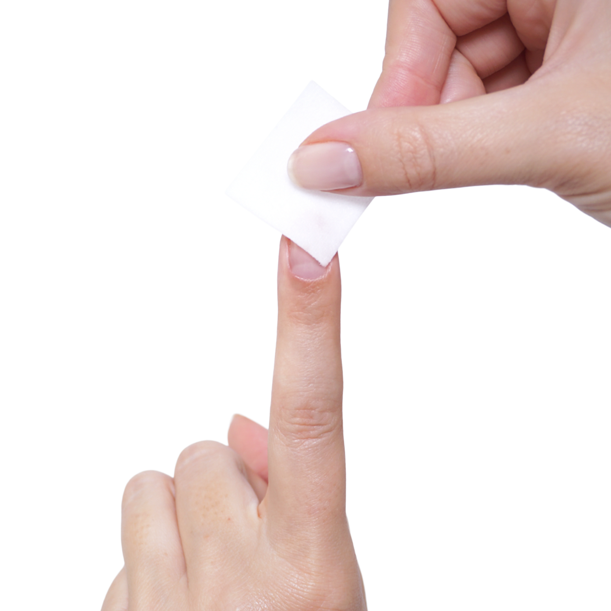 Take one nail cleanser pad and tear open, removing the wet pad. Wipe over all nails to clean.