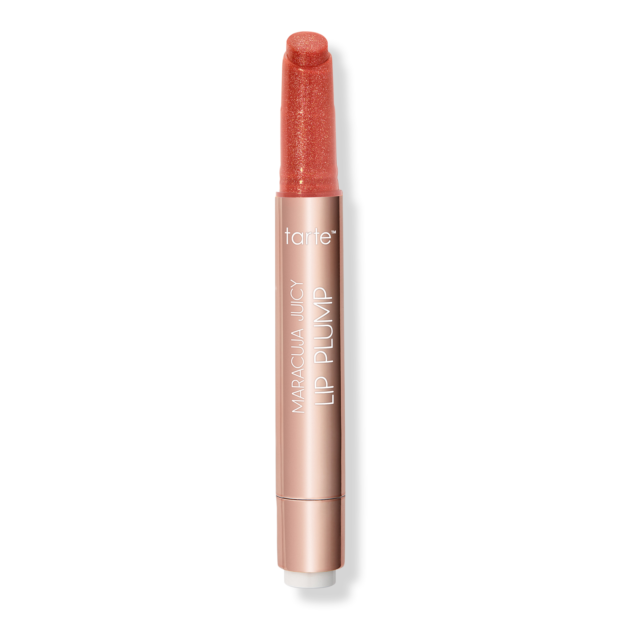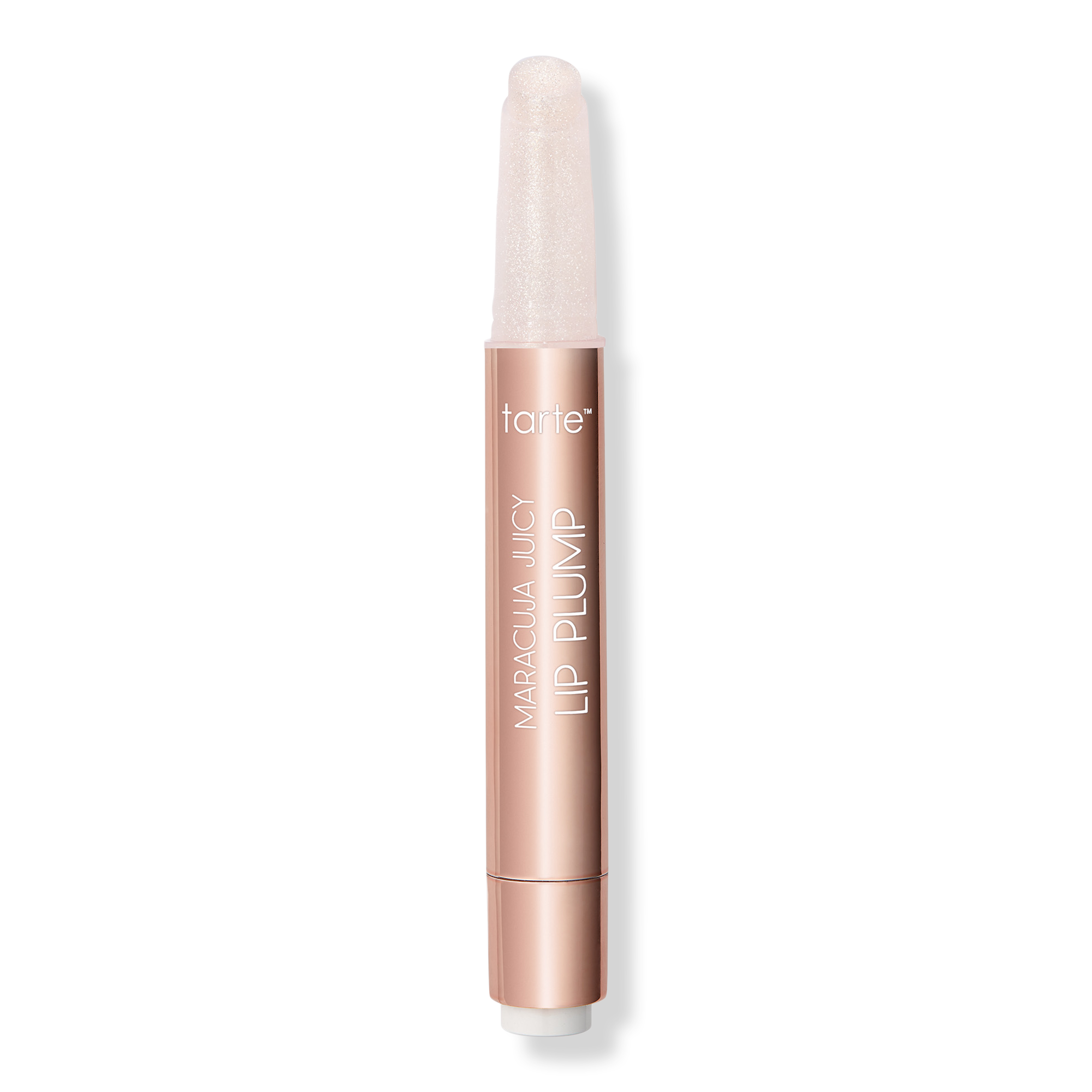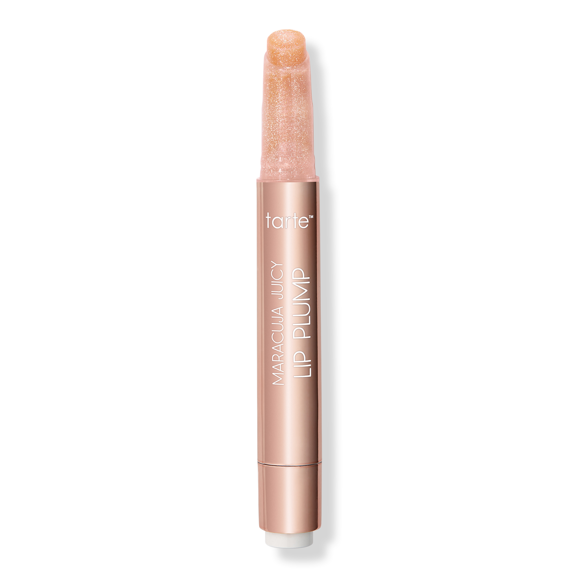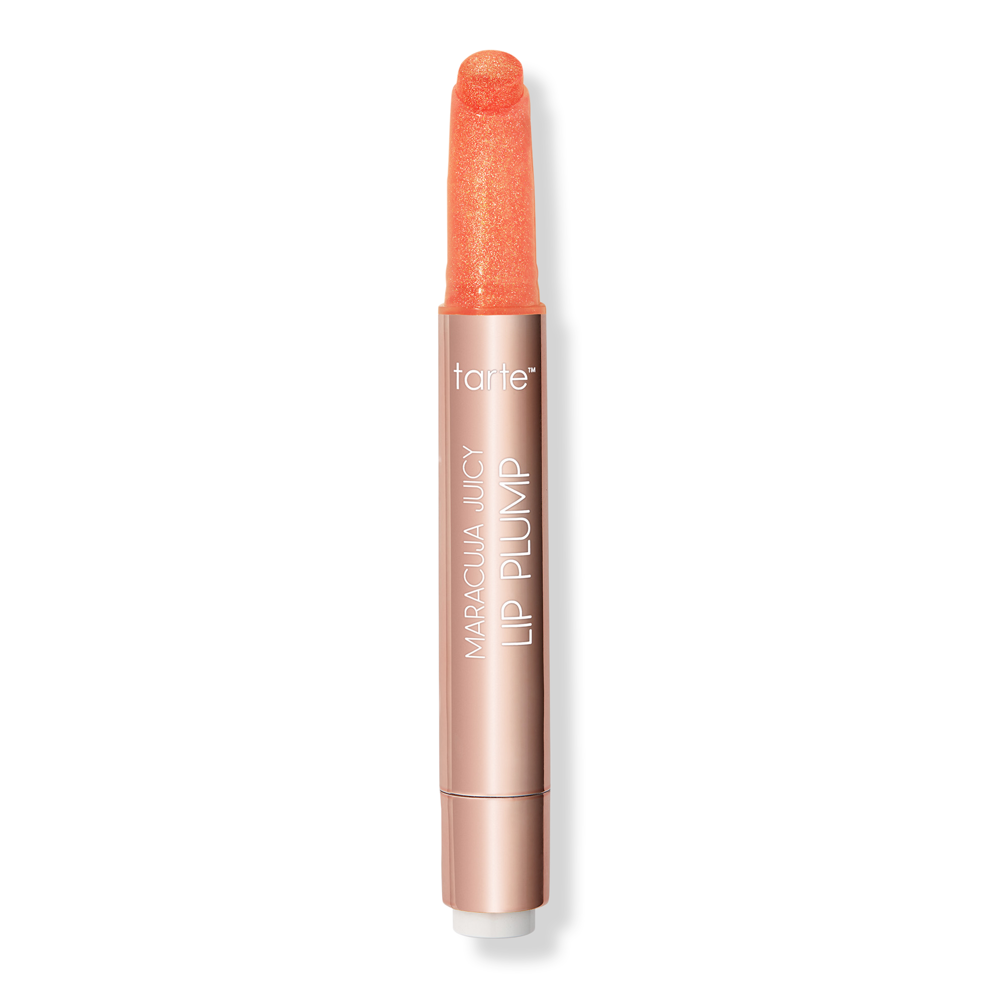 tarte's Maracuja Juicy Shimmer Glass Lip Plump is all-in-1 plumping balm, gloss, color & hydrating treatment with buildable coverage & a shimmer plump finish!