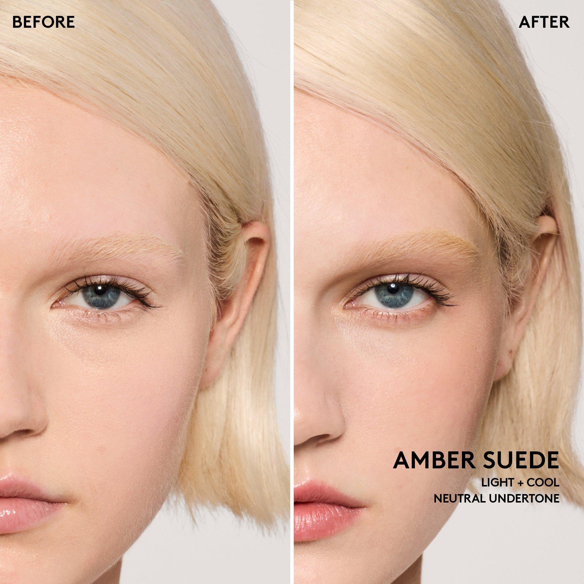 For the first step of the Fenty face, create a soft, matte base: Swipe matte Skinstick onto skin and blend with fingers or with the Portable Contour \& Concealer Brush.
