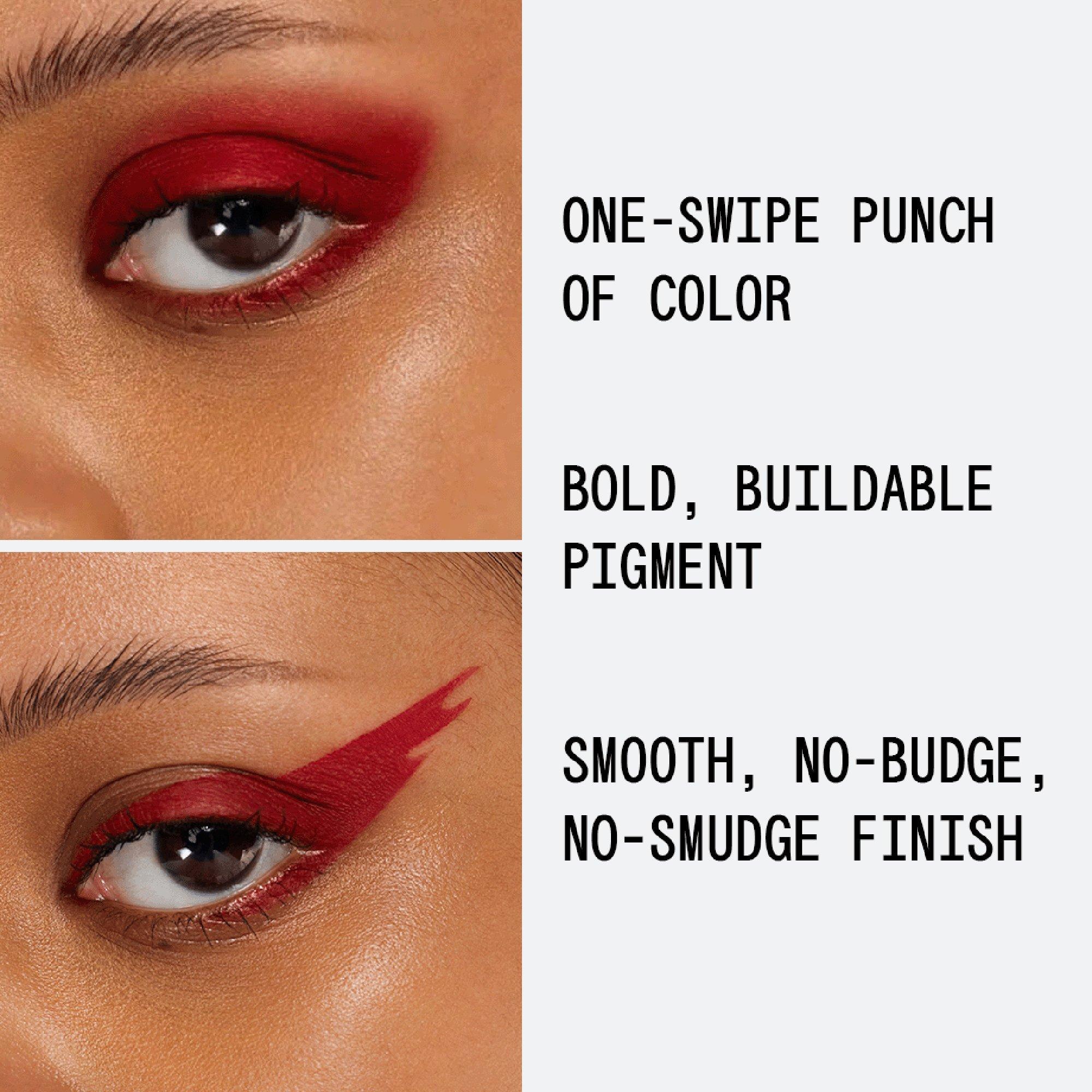 The about-face Matte Fluid Eye Paint is a powerful, one-swipe punch of liquid eye color that delivers bold, buildable pigment.