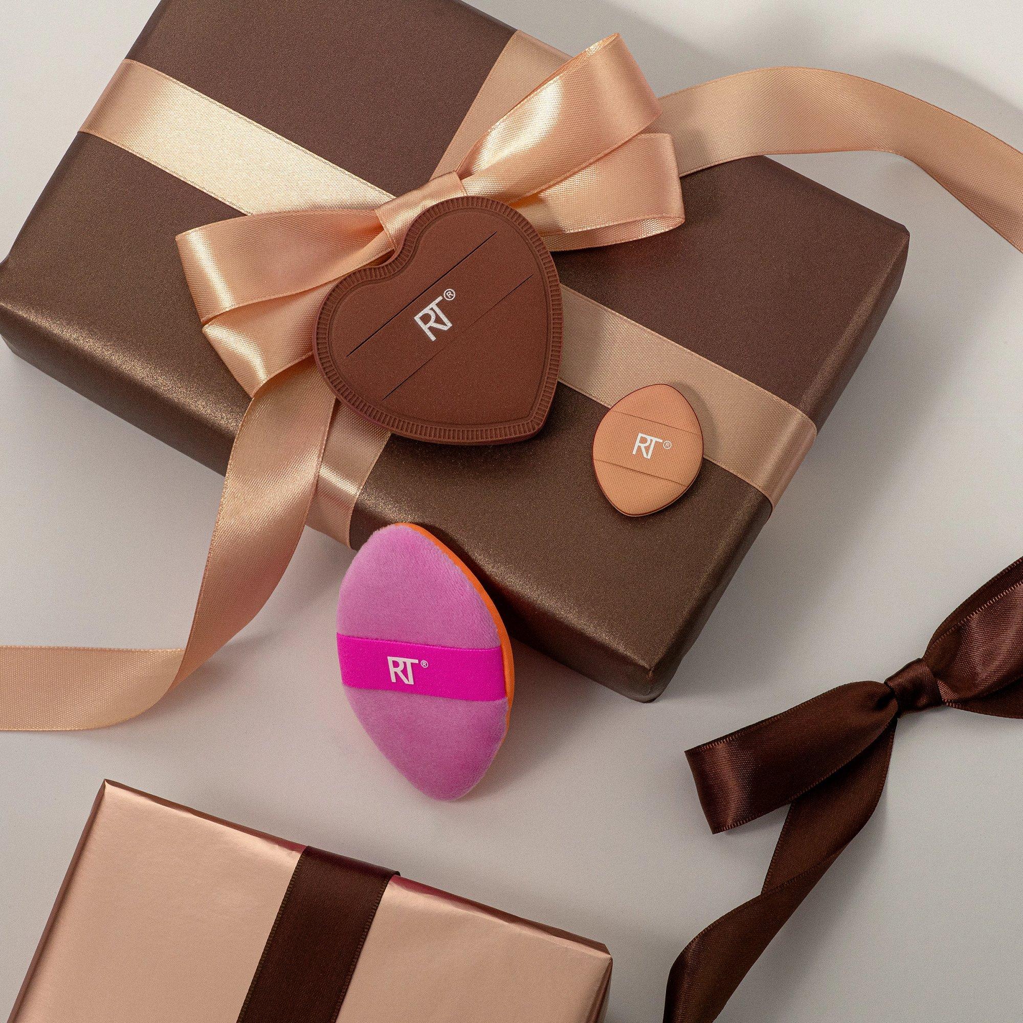 Real Techniques Matte + Merry Puff Trio conceals, blends and sets for a flawless complexion- the perfect holiday gift for makeup-lovers.