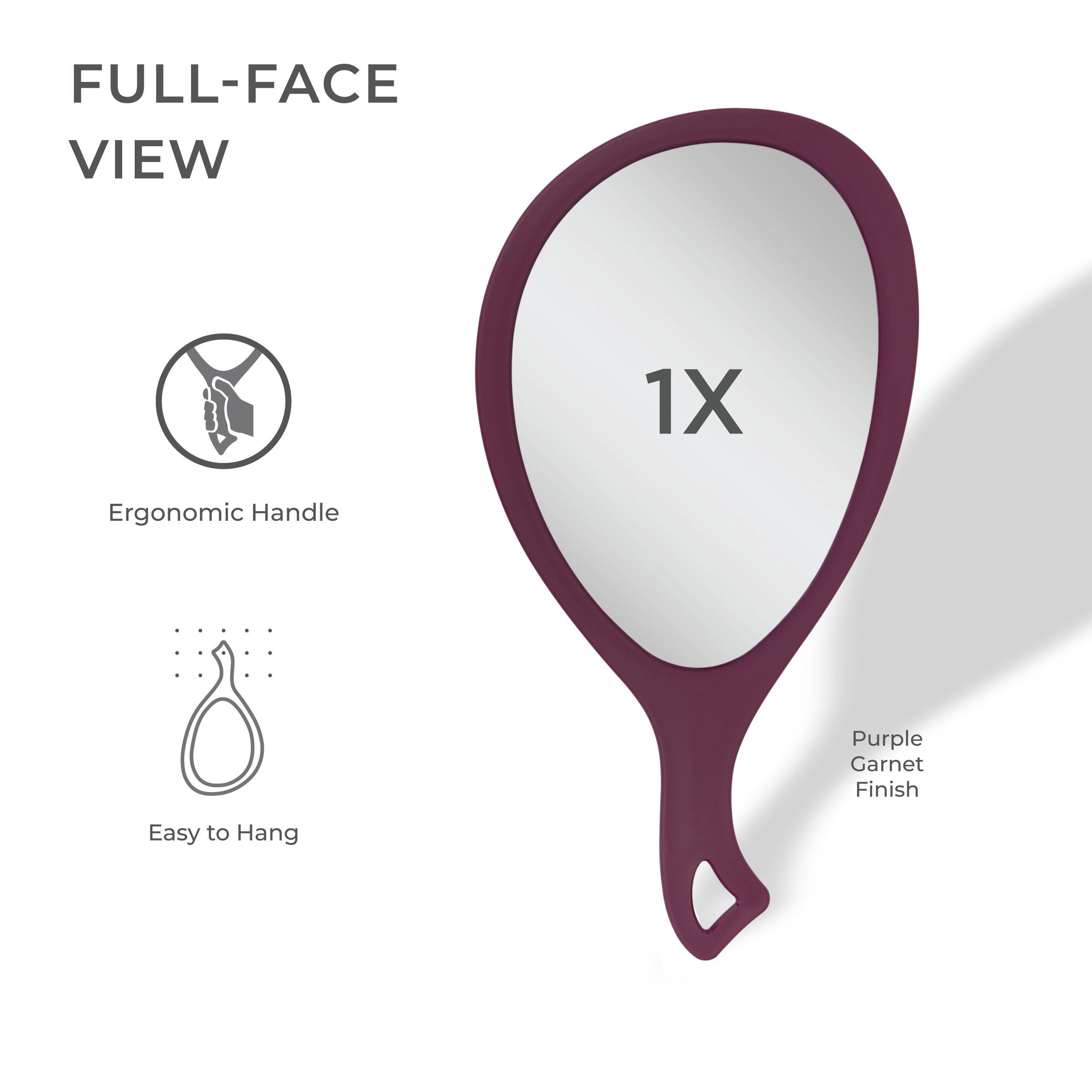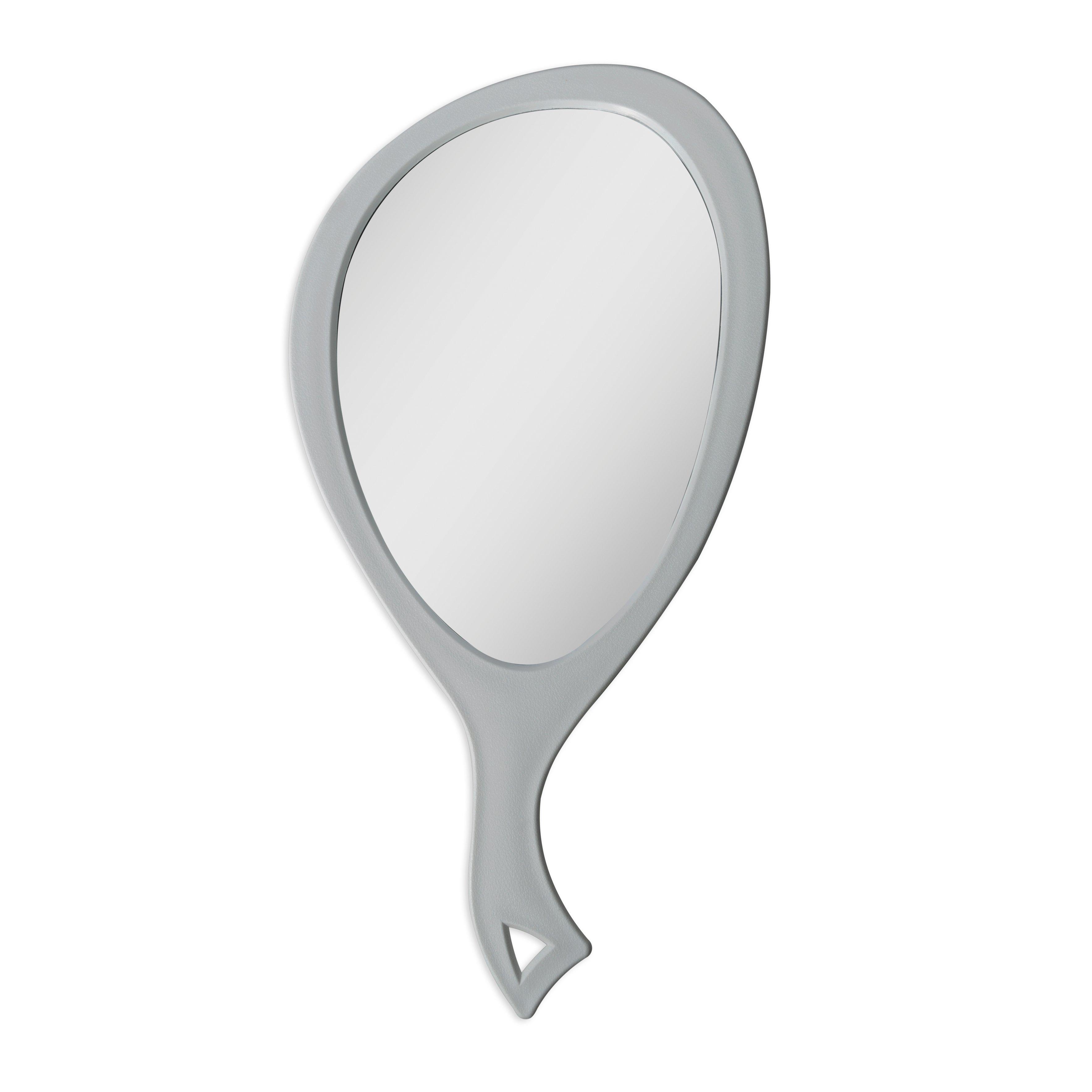 15-inch by 8 inch. True-to-image optical glass and a perfectly sized reflective surface. Providing a clear & accurate view that's for detailed grooming and makeup application. Engineered with advanced molding technology, this hand mirror ensures the glass is securely set and secure.