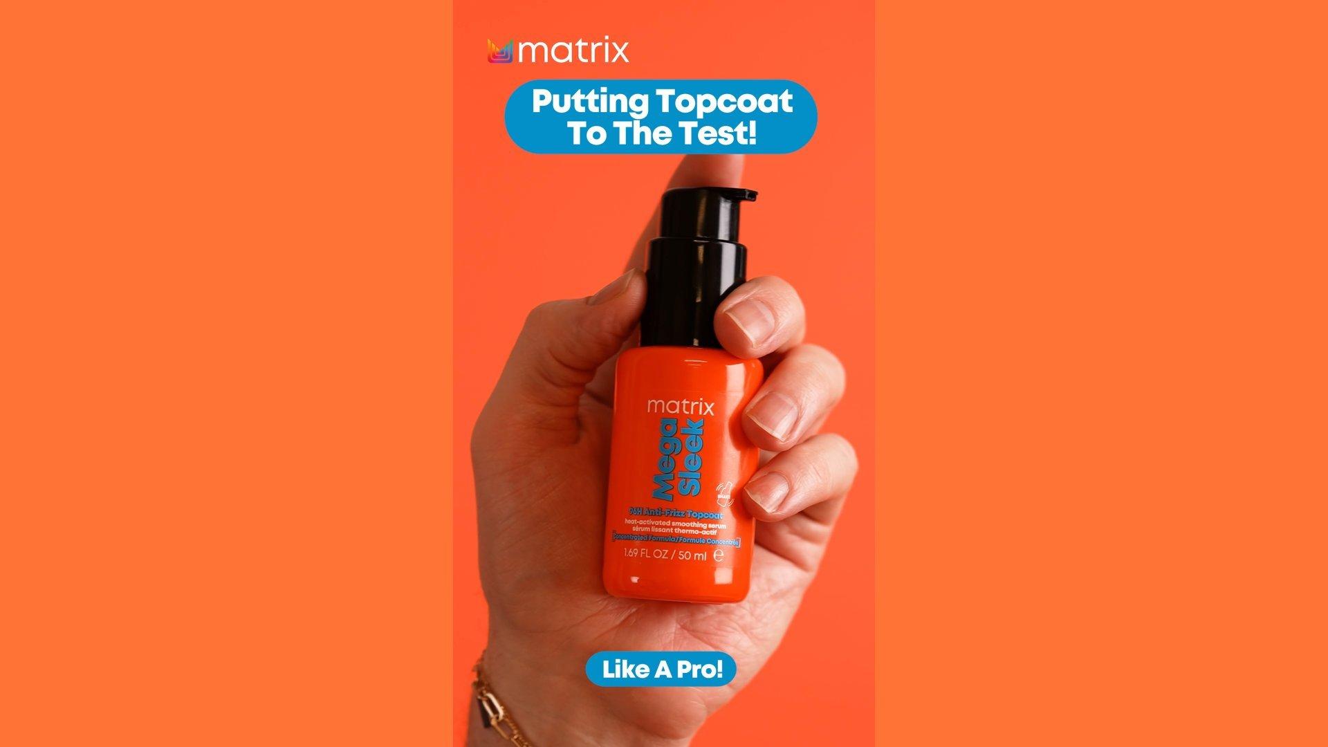 Matrix Mega Sleek Anti-Frizz Topcoat Hair Serum and heat protectant defeats frizz for 96 hours with a heat-activated hydrophobic barrier. This leave in treatment seals hair to defy humidity and provides frizz-prone, vibrant hair shine.
