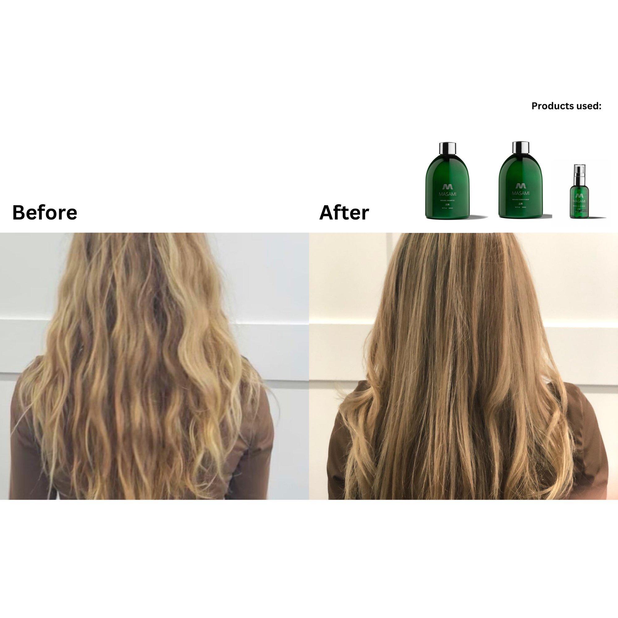 For best results: After shampooing and conditioning with MASAMI, apply a small amount to towel-dried or dry hair. Gently work through hair using your fingers. Do not rinse. Style as usual. For continuous hydration, use daily.